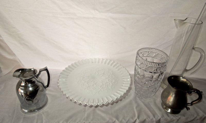 Lot 62: Vintage Glass Cake Stand, English Pewter, Stanley Carafe and more