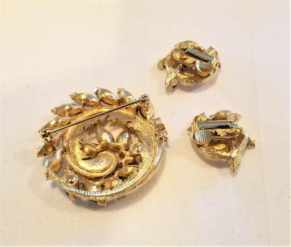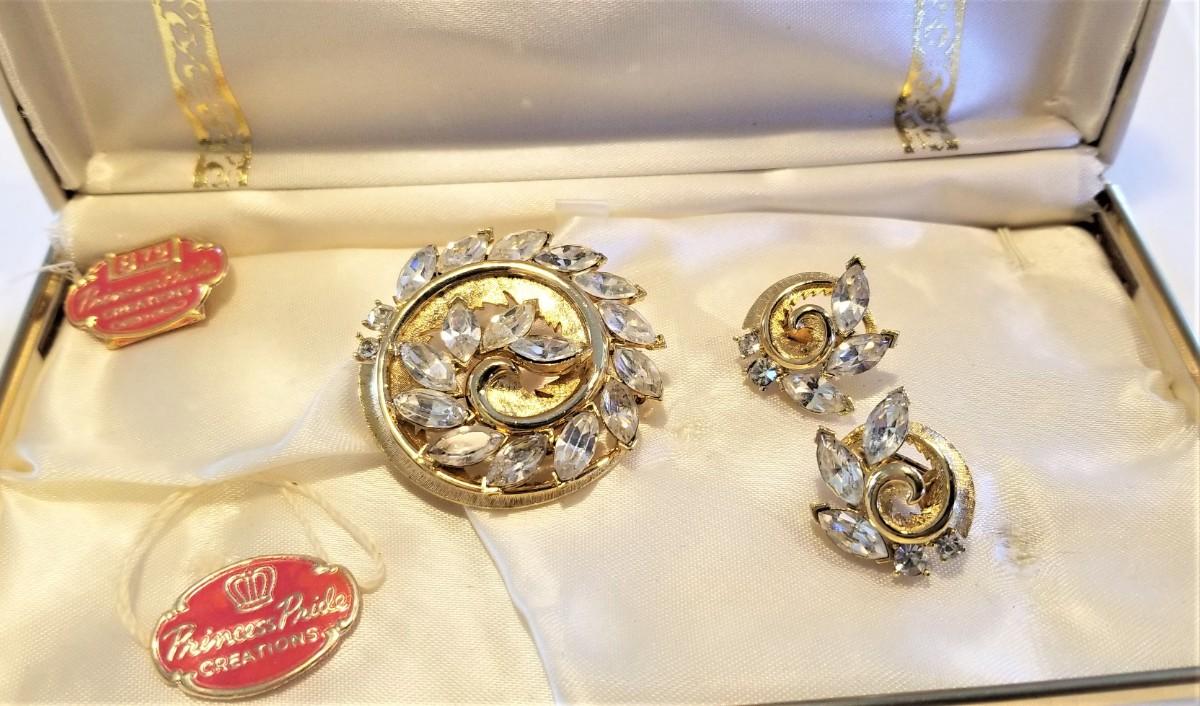 Lot #62 Vintage PRINCESS PRIDE Creations Rhinestone Brooch and Matching earrings