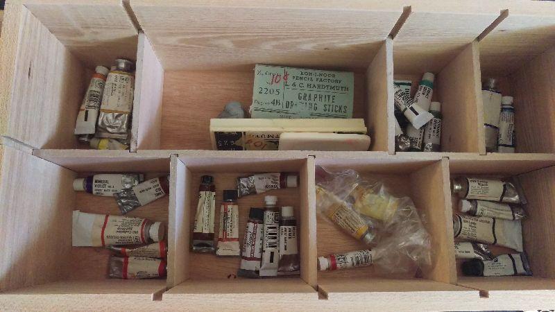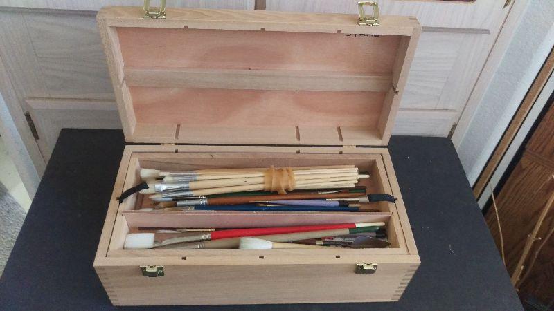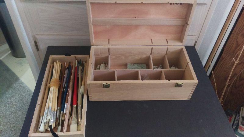 Lot 62- Wood Carrying Case with Paint and Paintbrushes