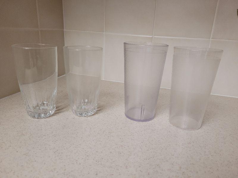 Lot 620: (2) Set of 2 Tumbler Cups/Glasses (2 Plastic & 2 Glass)