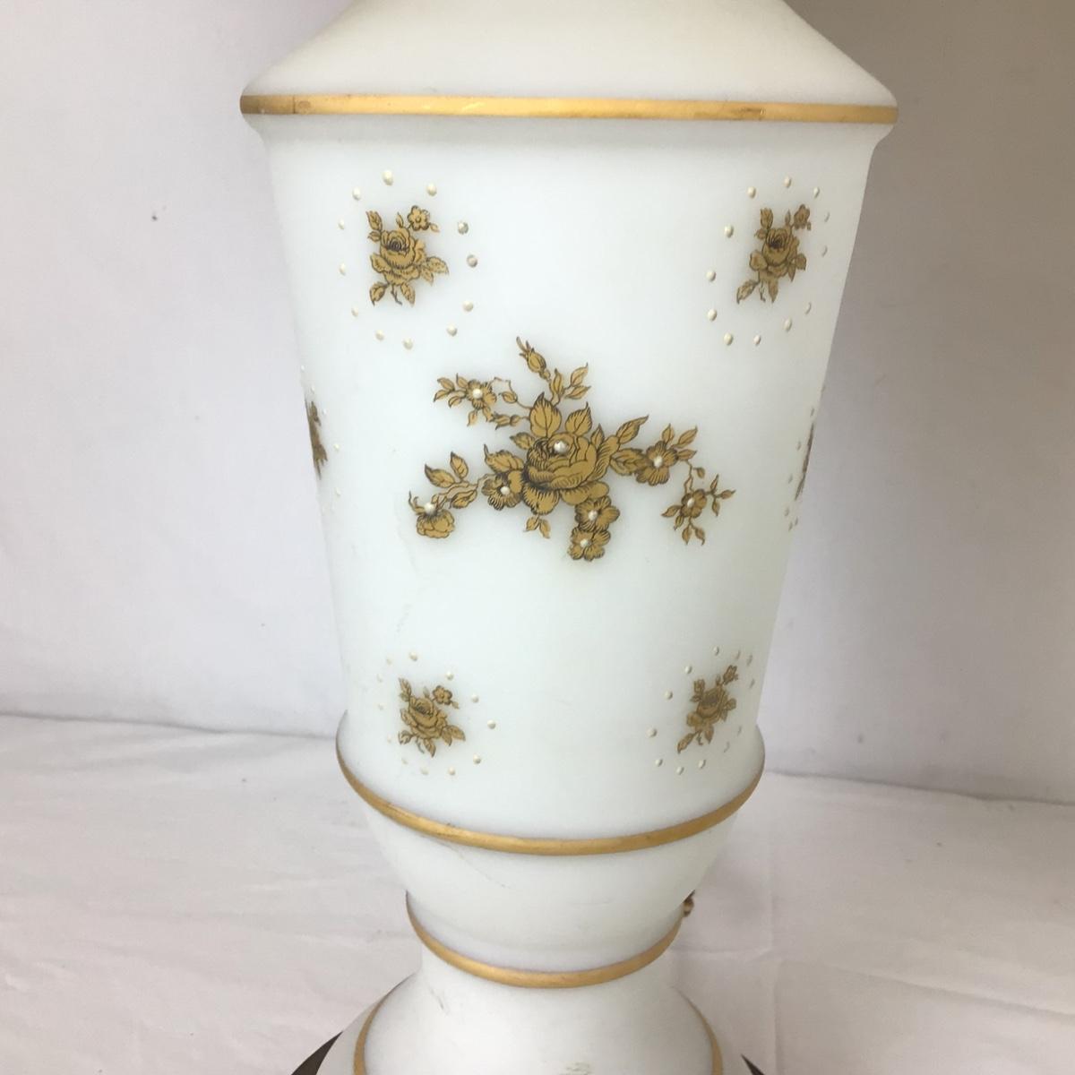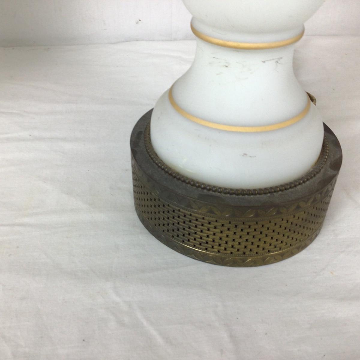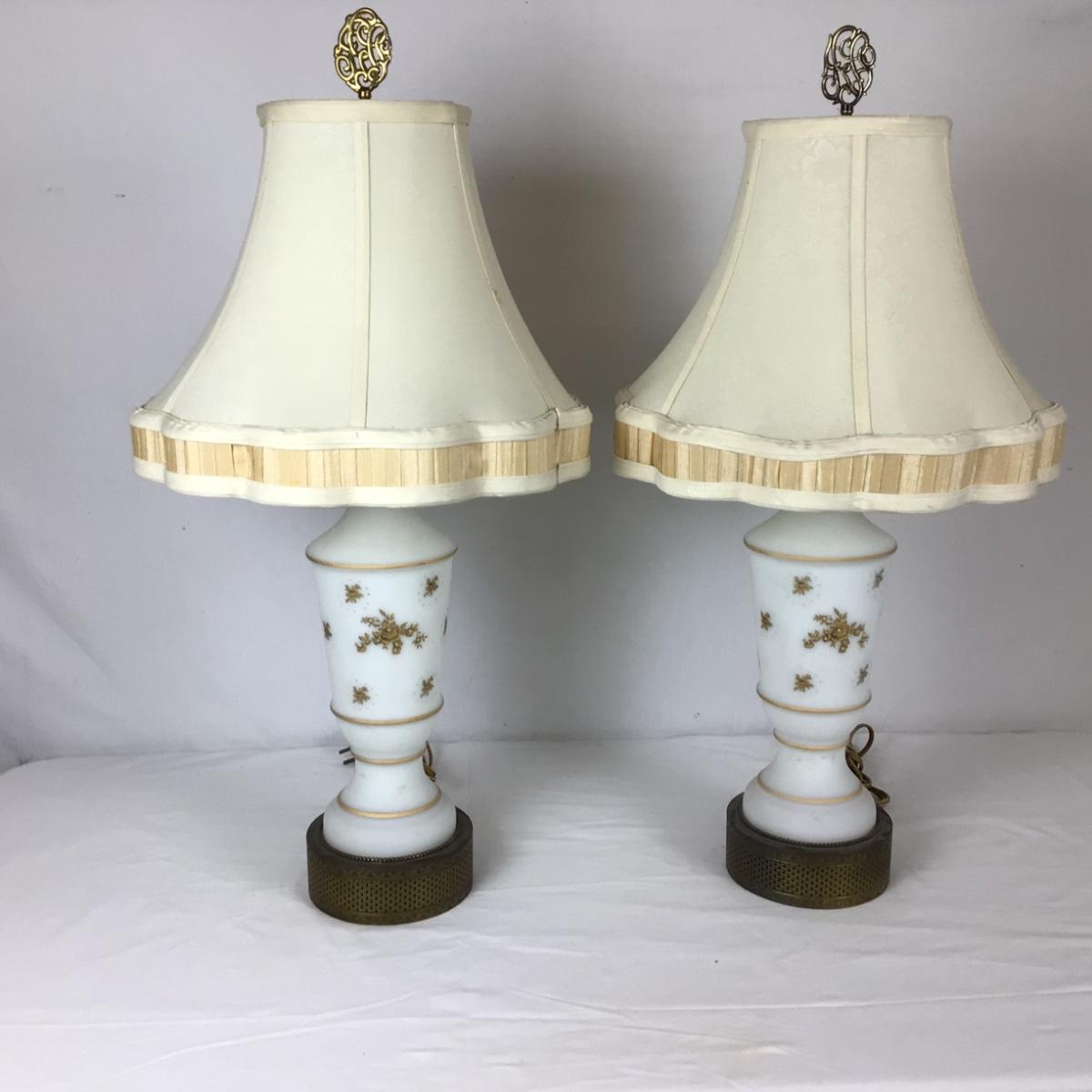 Lot. 6203. Pair of White Lamps with floral gold inlay and brass base