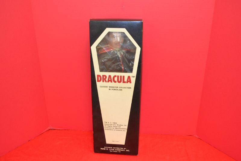 LOT 621 VINTAGE RARE 1983 RENE D. LYON PORCELAIN 18" BELA LUGOSI DRACULA DOLL STILL IN BOX