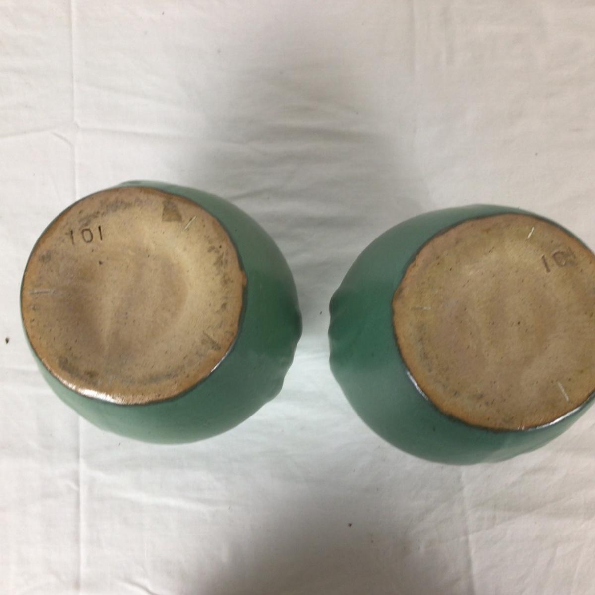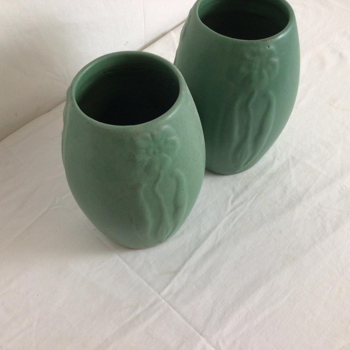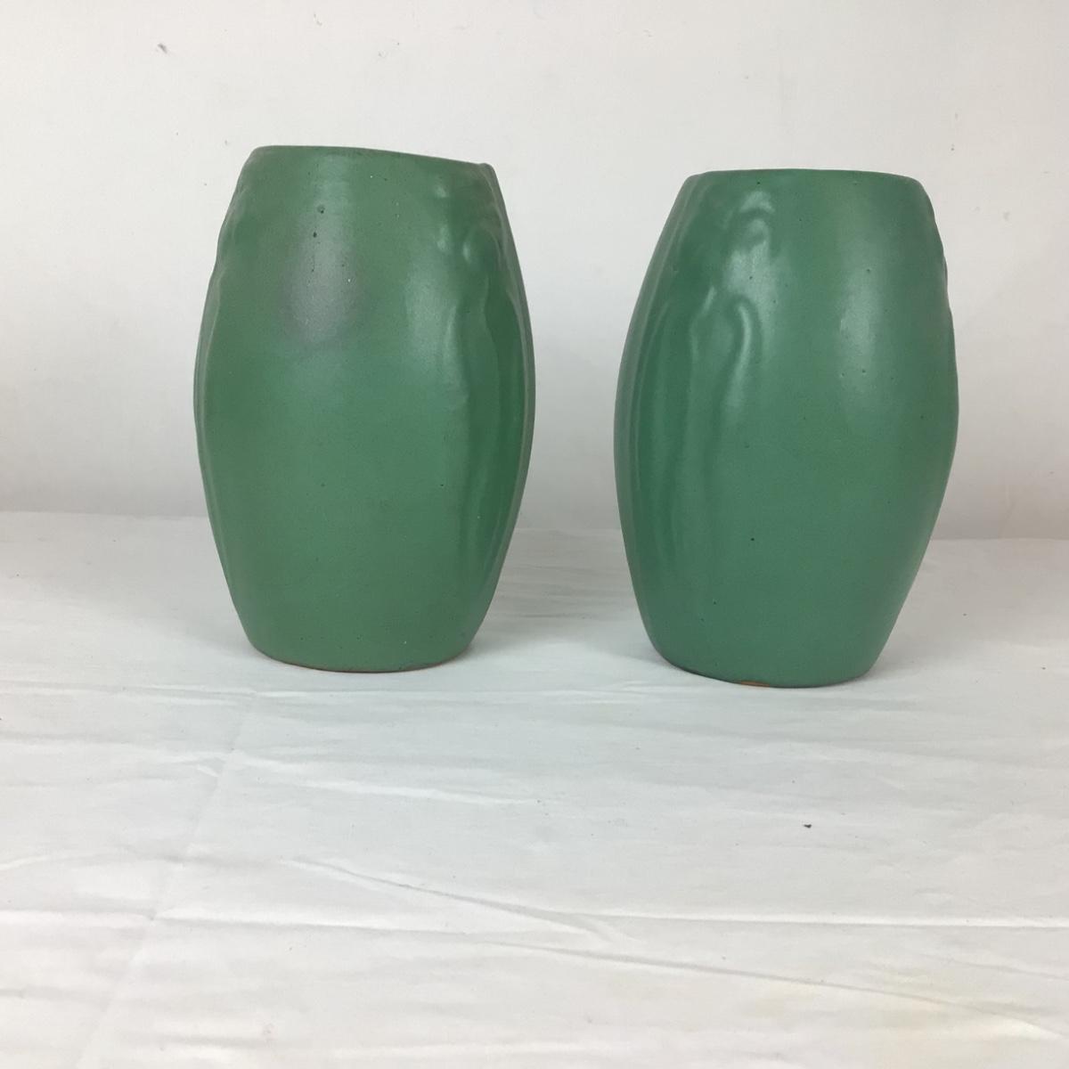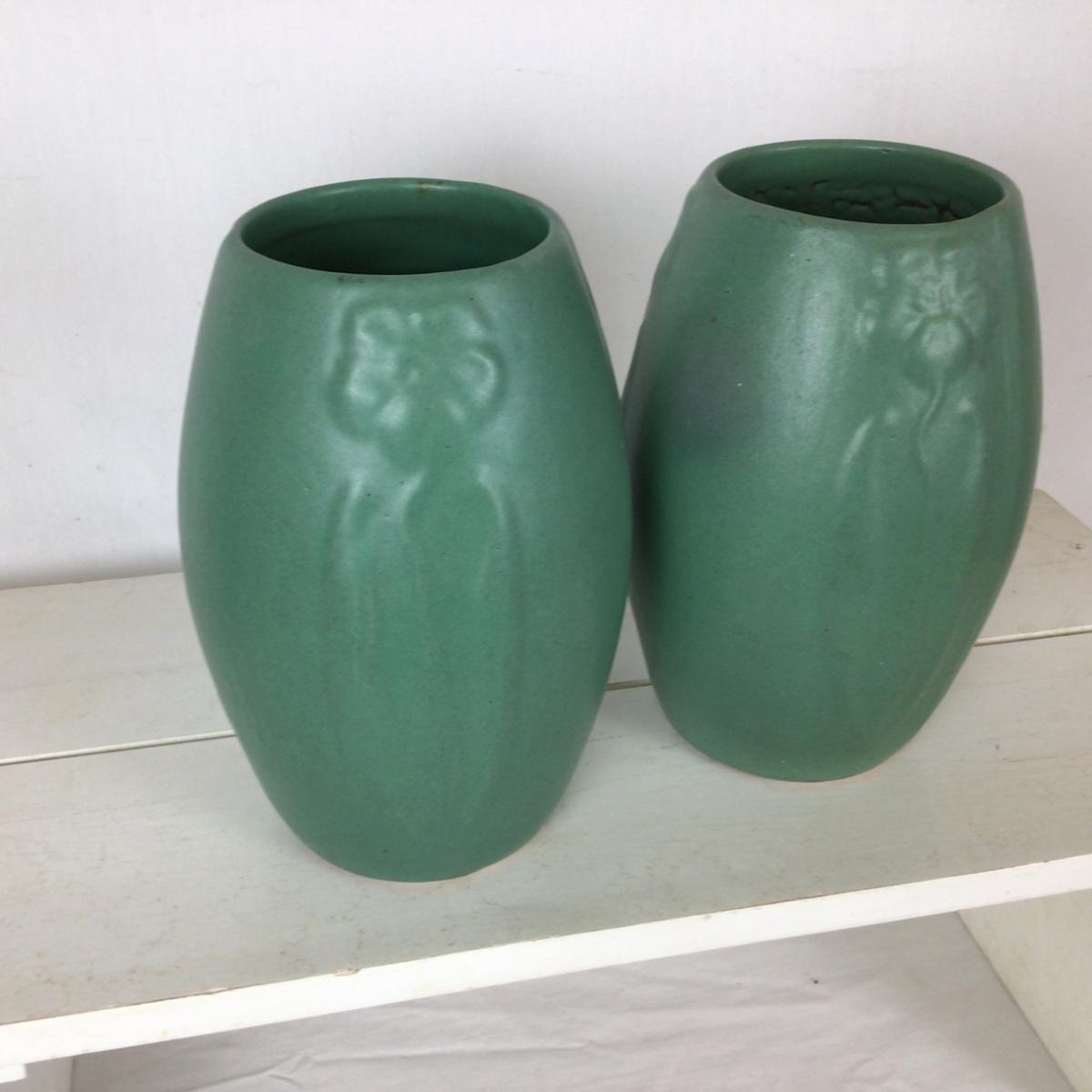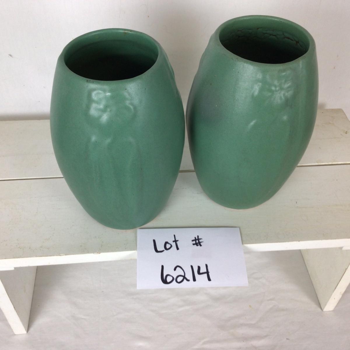 Lot. 6214. Pair of Zanesville Matte Green Vases