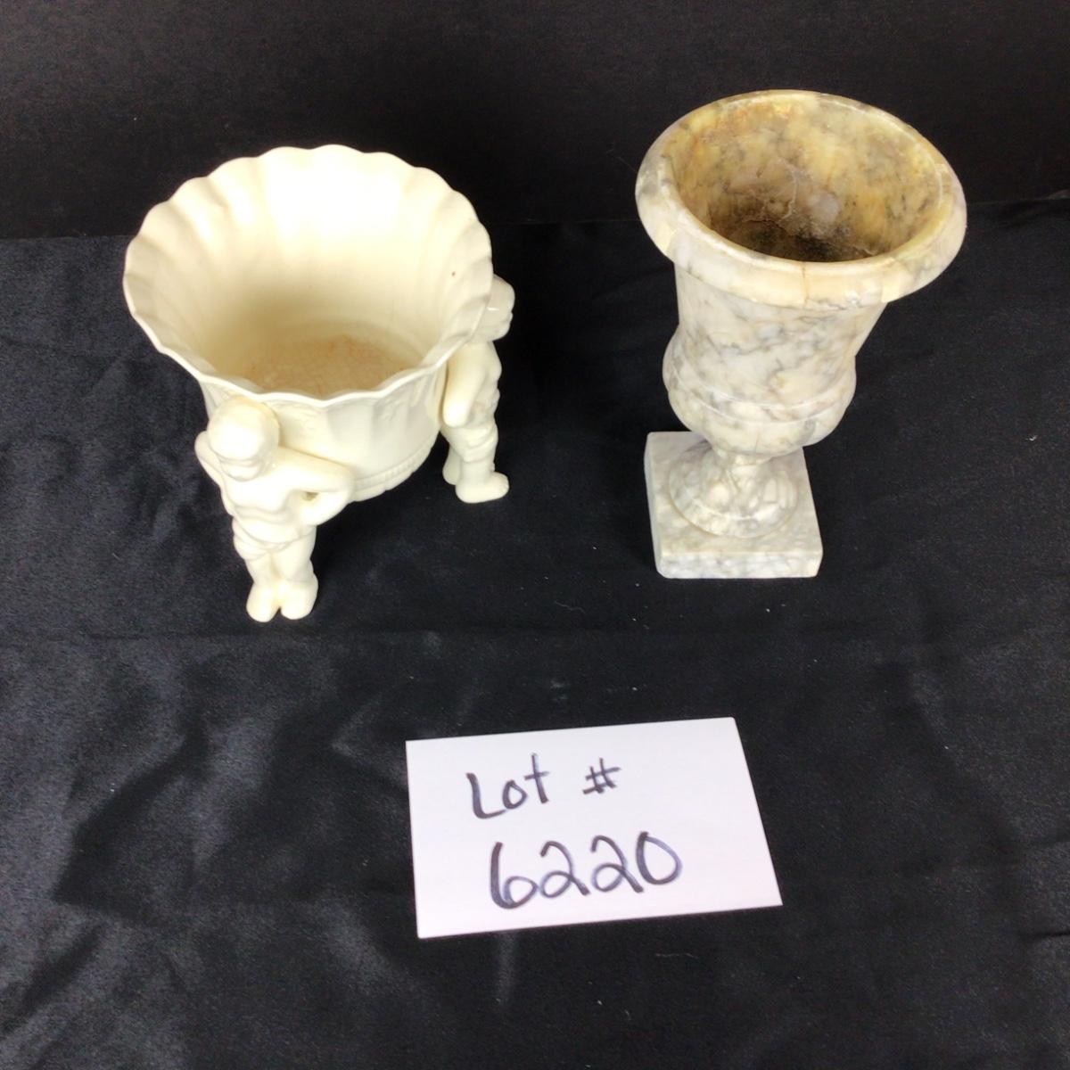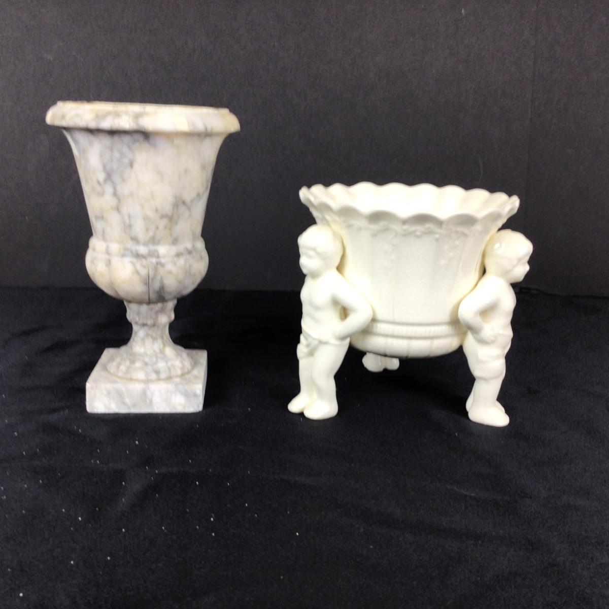 Lot. 6220. Alabaster Vase and Cherub Porcelain Vase