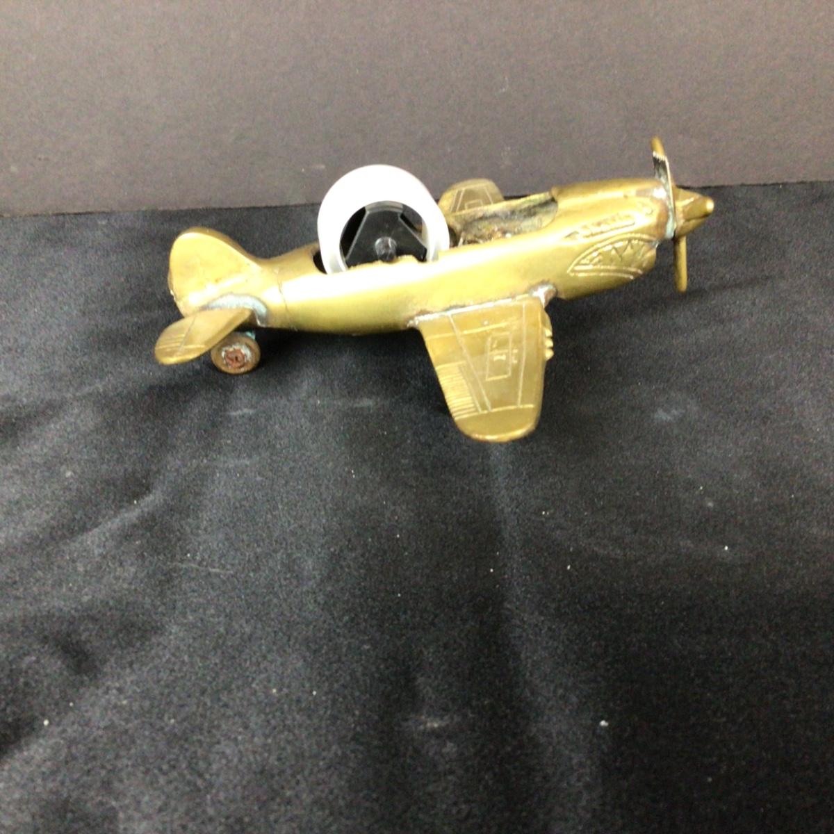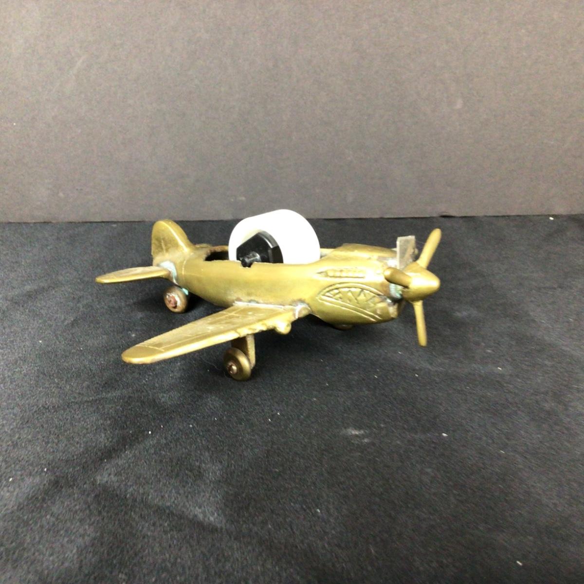 Lot. 6221. Vintage Flying Tiger WWII Brass Fighter Plane Tape Dispenser