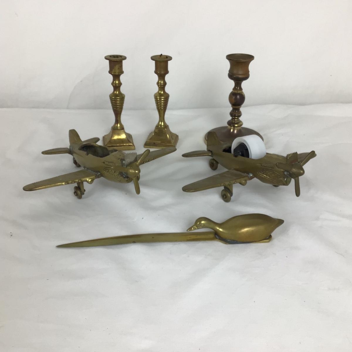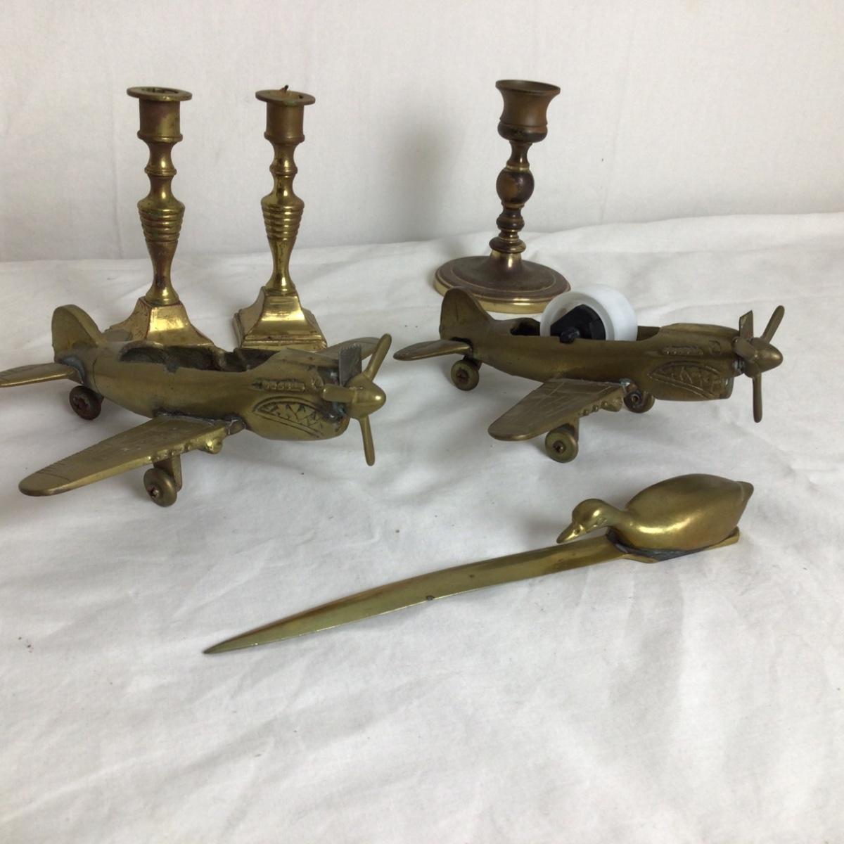Vintage Flying Tiger WWII brass Fighter Plane tape dispensers
