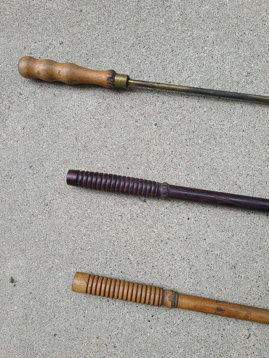 Antique wood and metal rods that look to be used for gun cleaning, may be military. The pictures show condition, measurements if taken, and what is included in the lot. Due to the large amount that we photograph and the time frame, we are not always able to take measurements. All items unless noted, are pre-owned and have been used. If you purchased furniture, you must bring help. We do not allow one person to carry large furniture out on their own. Bring help, tools and a truck for the safety of our client’s homes, and your personal safety. Company policy. Thank you.