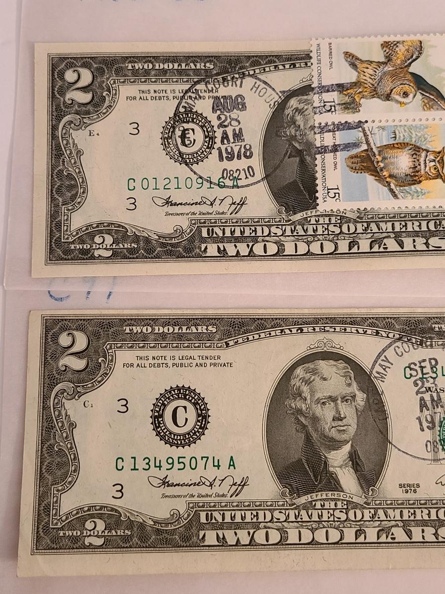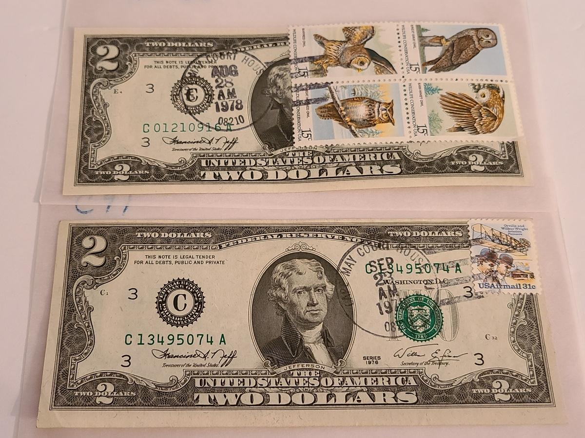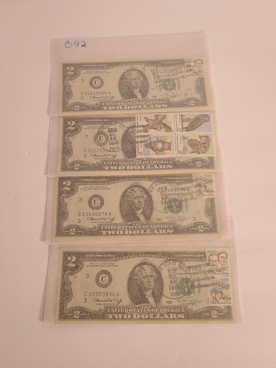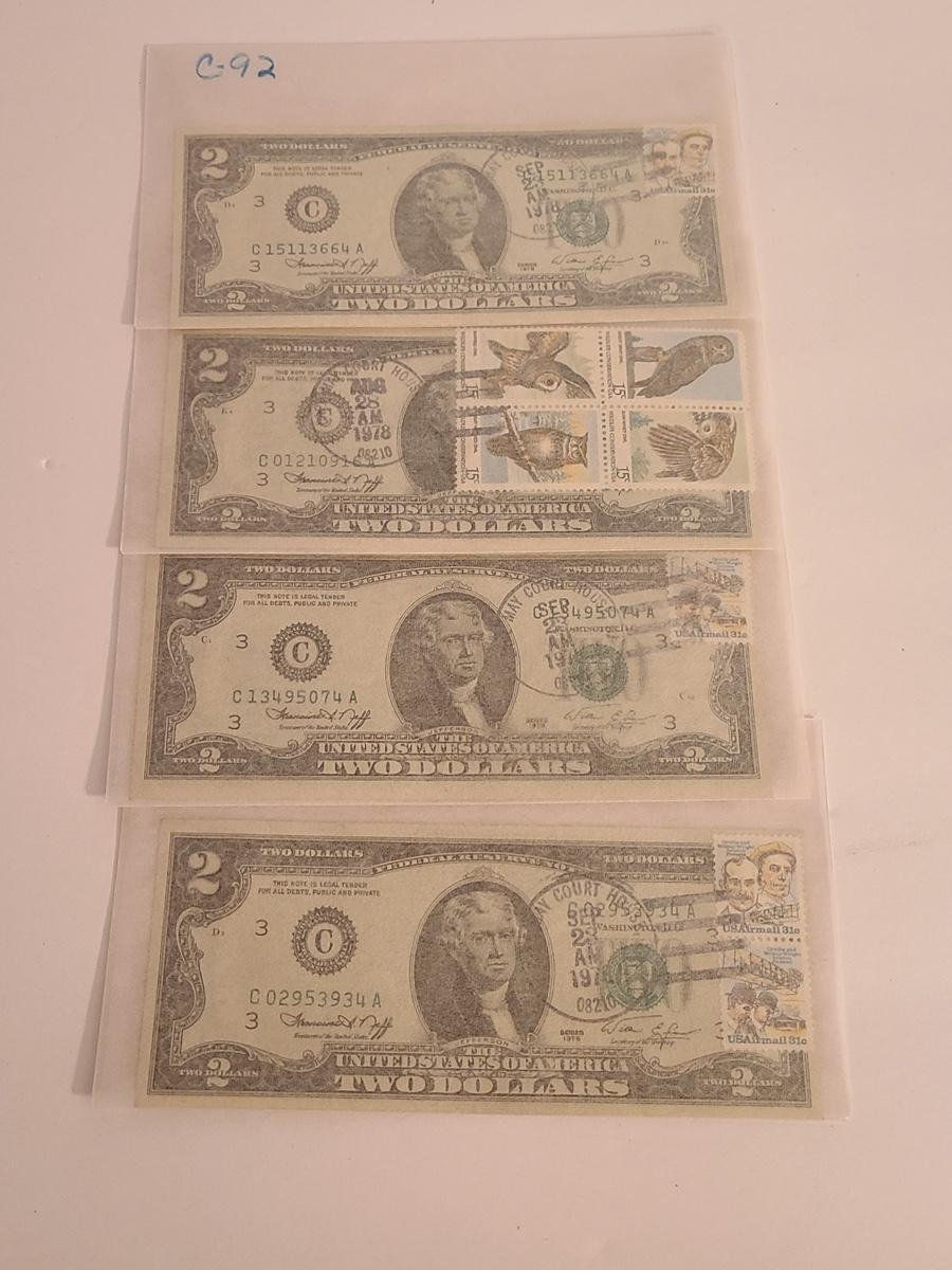 Lot 238: Four $2.00 Bills First Day of Issue Stamped and Sealed