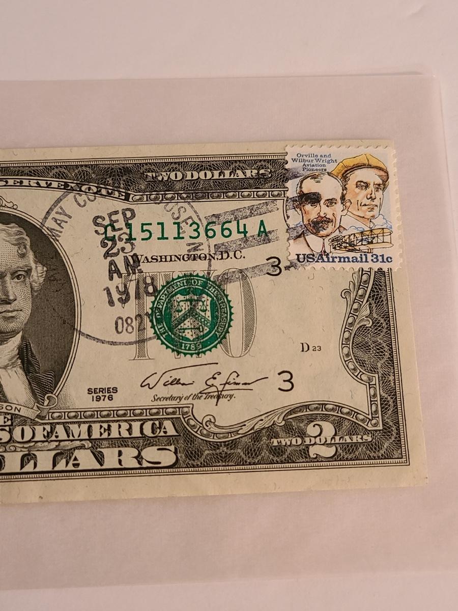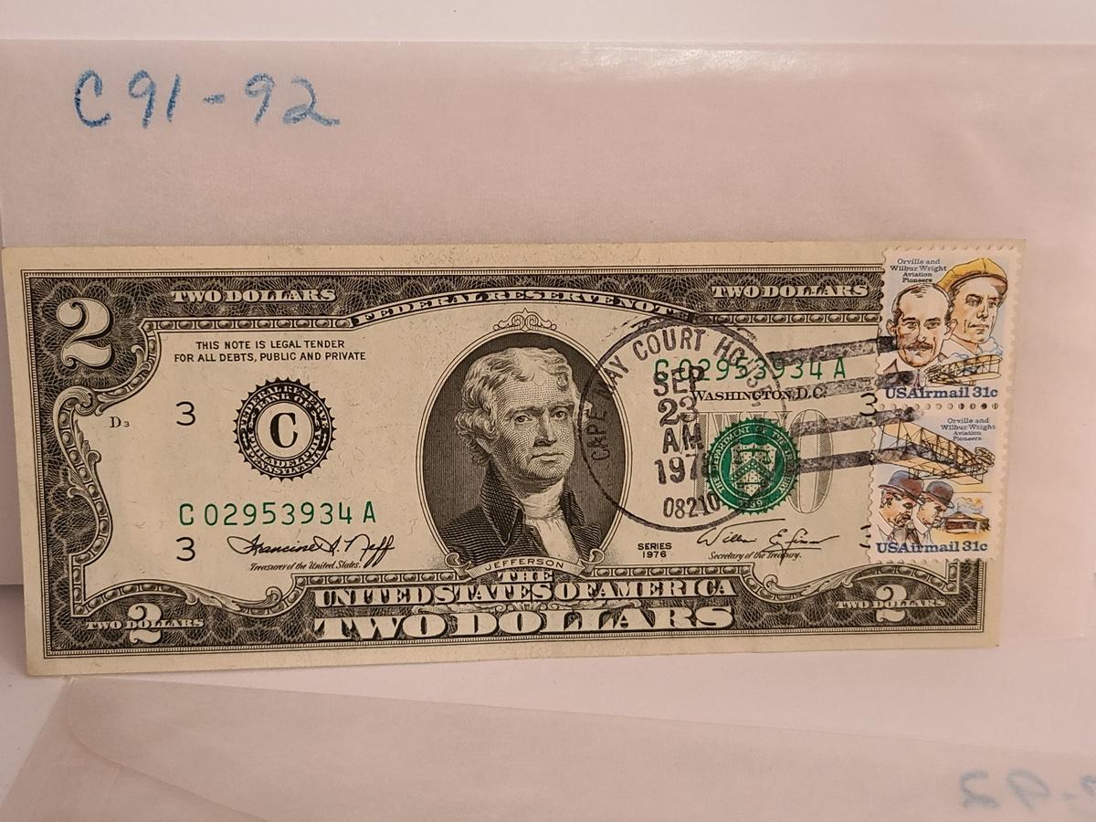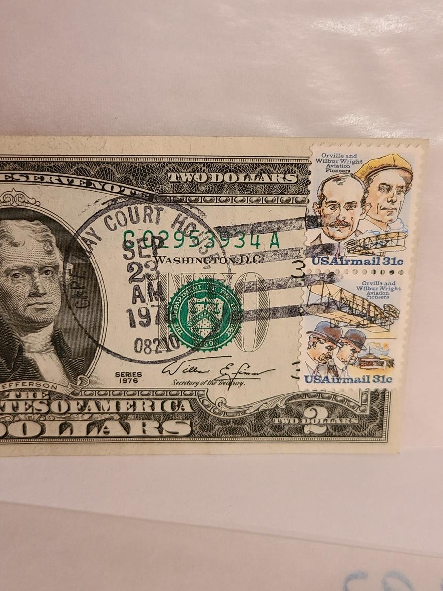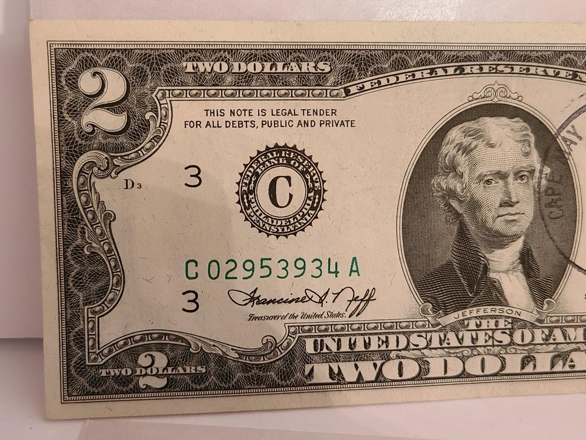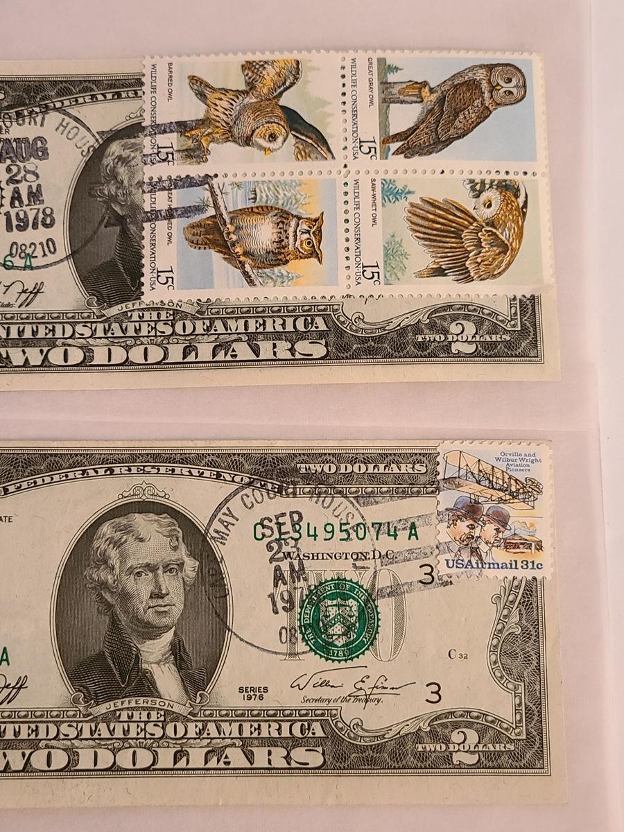 Lot 238: Four $2.00 Bills First Day of Issue Stamped and Sealed