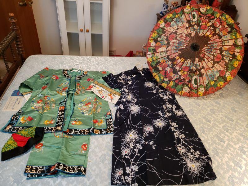 Lot 624: Asian Clothing & Child's Umbrella