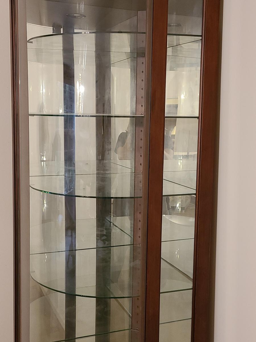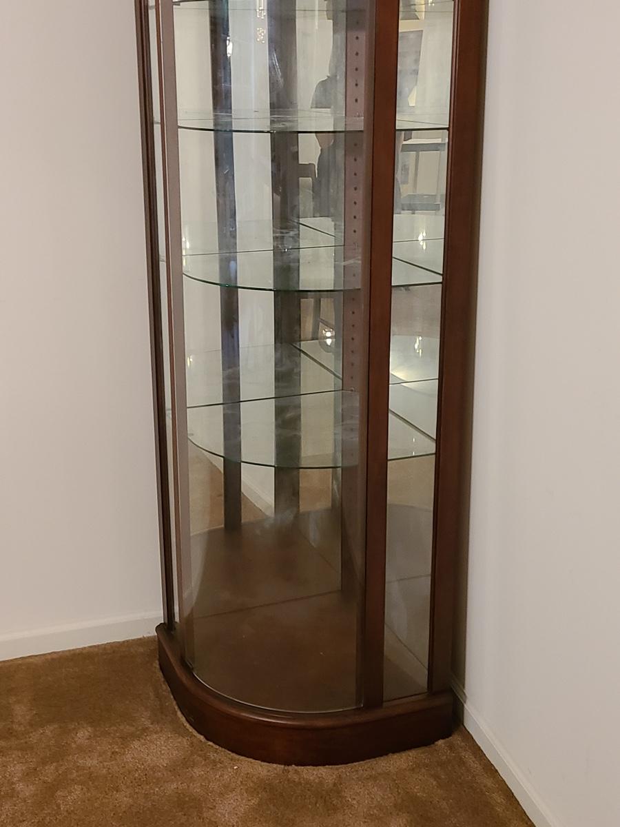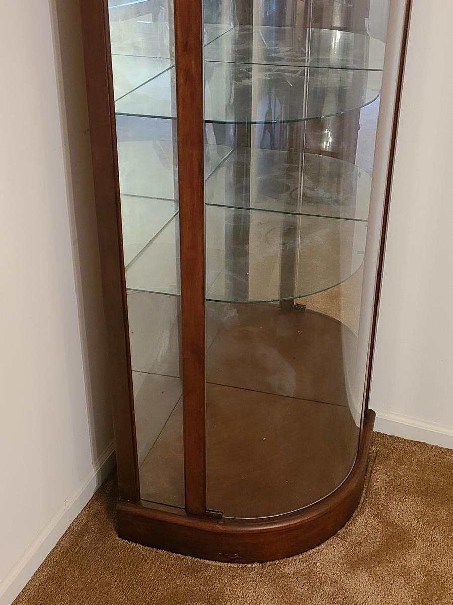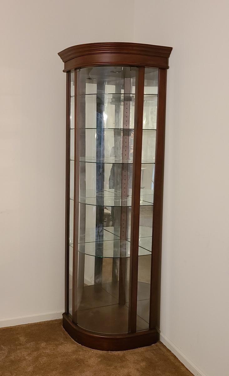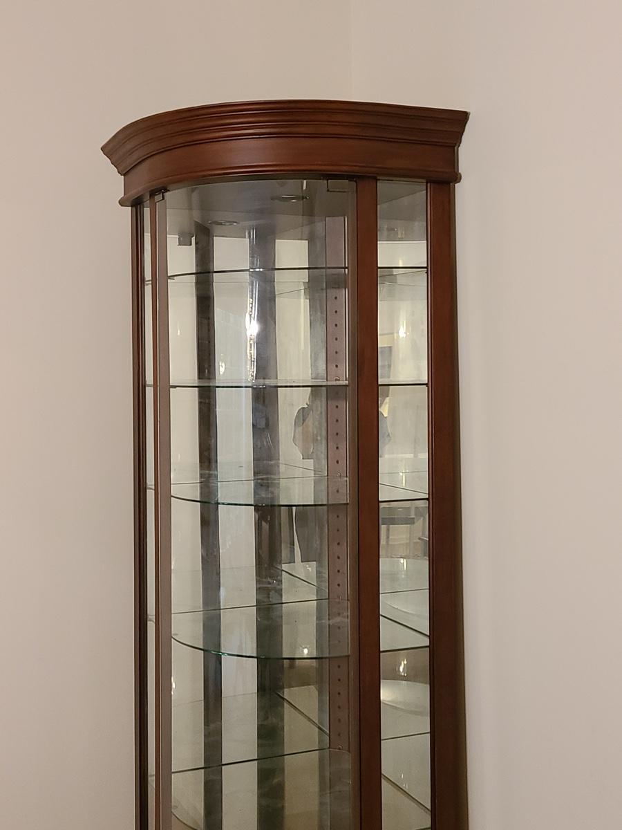 36x21x80 inches tall. This lovely piece is perfect for displaying dishes, teacups, or collectibles. It has a mirror back, bow front with glass, and lighted on top. Needs a light dusting. Please see all pictures as they are the best representation of the items. The pictures show condition, measurements if taken, and what is included in the lot. Due to the large amount that we photograph and the time frame, we are not always able to take measurements. All items unless noted, are pre-owned and have been used. If you purchased furniture, you must bring help. We do not allow one person to carry large furniture out on their own. Bring help, tools and a truck for the safety of our client’s homes, and your personal safety. Company policy. Thank you.