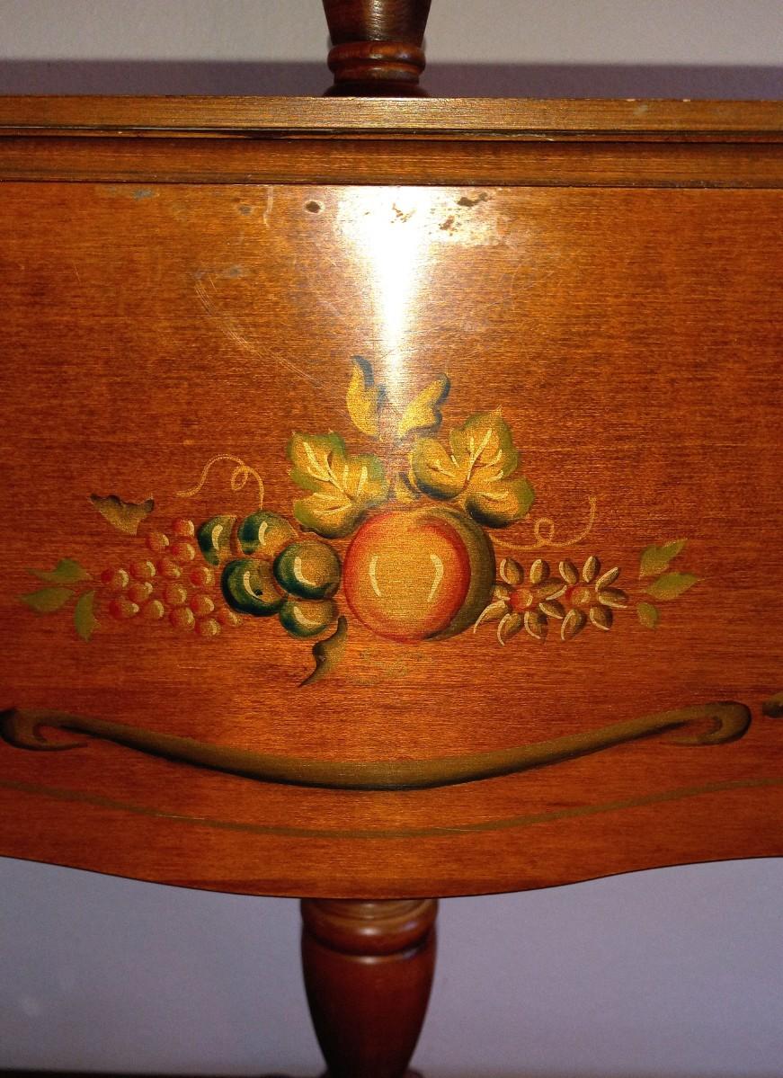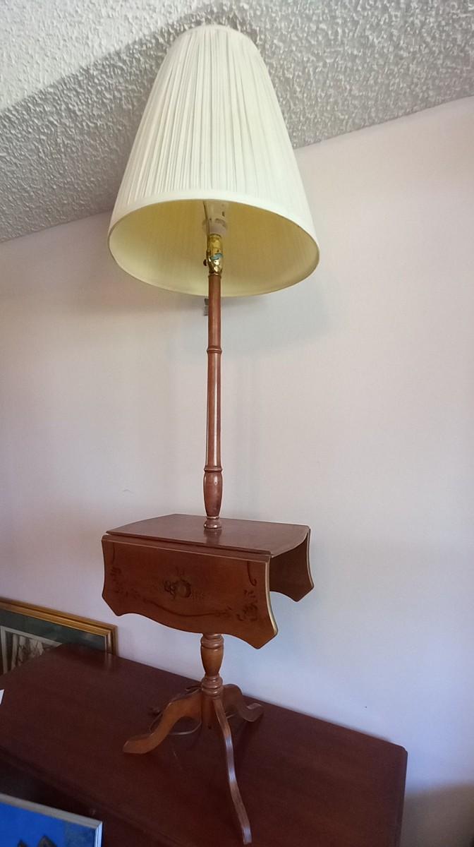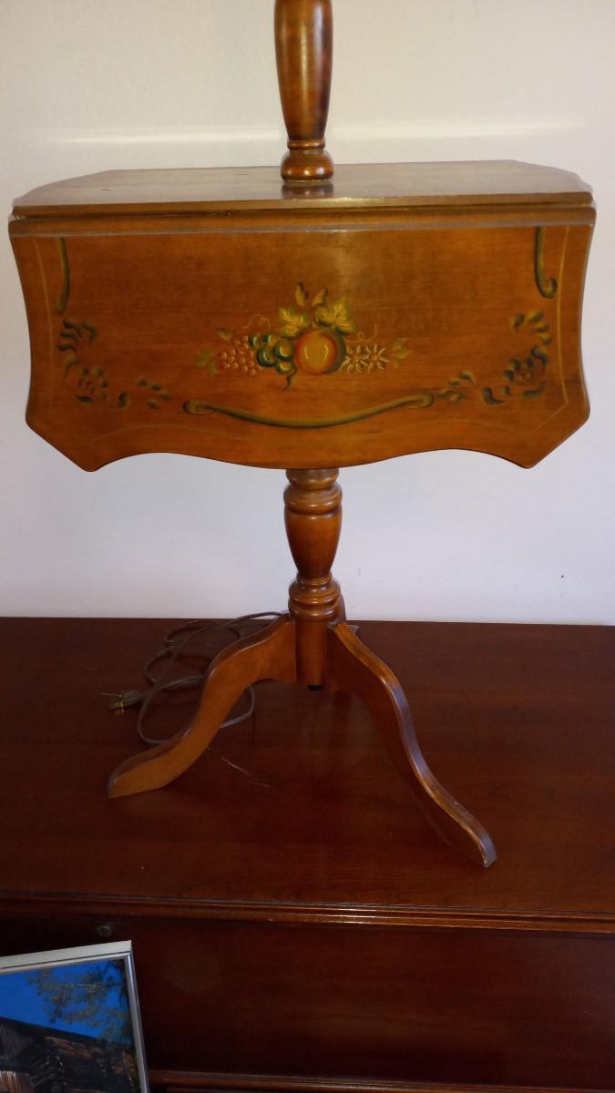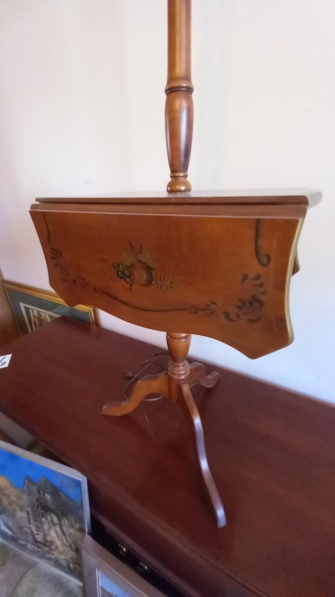 LOT 626 DROP ;LEAF LAMP TABLE WITH PAINTINGS