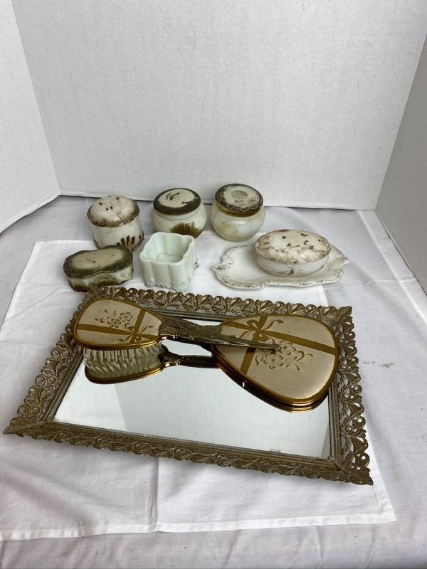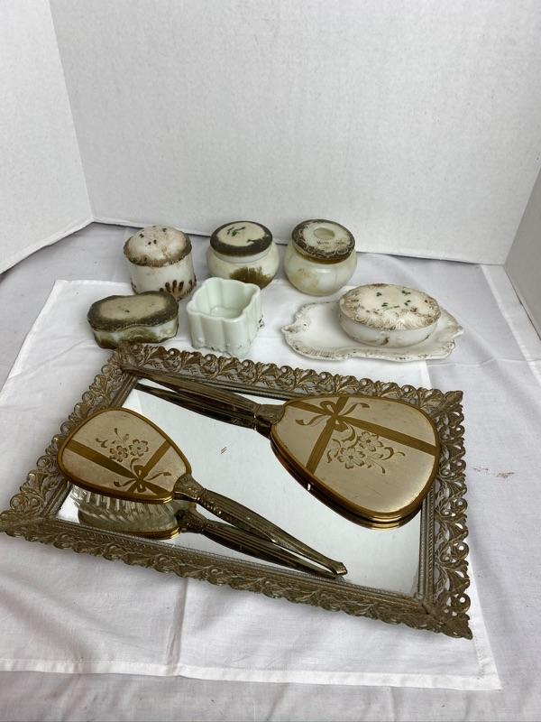 LOT # 626 Antique Dresser Jars & Vanity Set