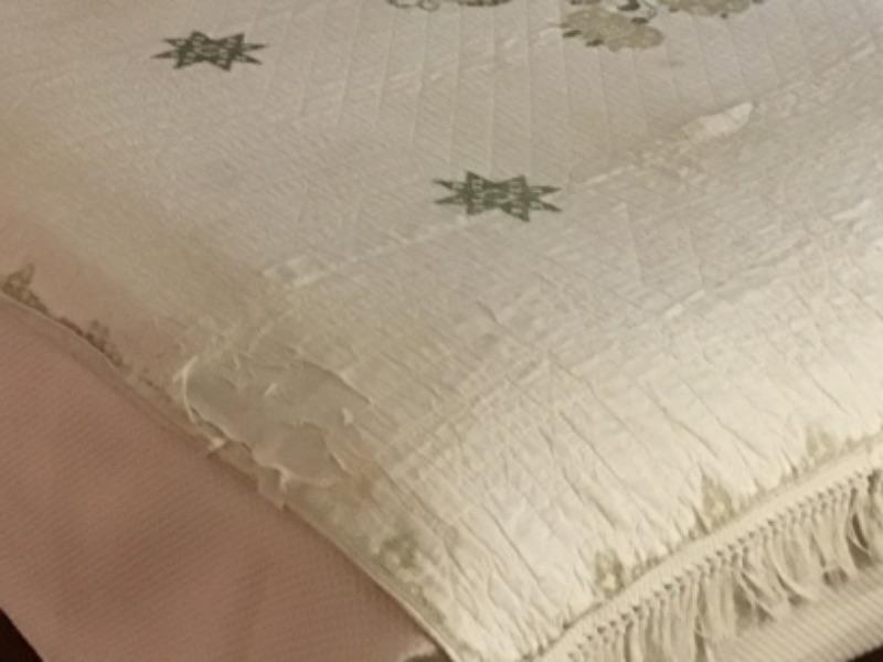 626: Antique Handmade Mennonite Cross Stitched Bedspread