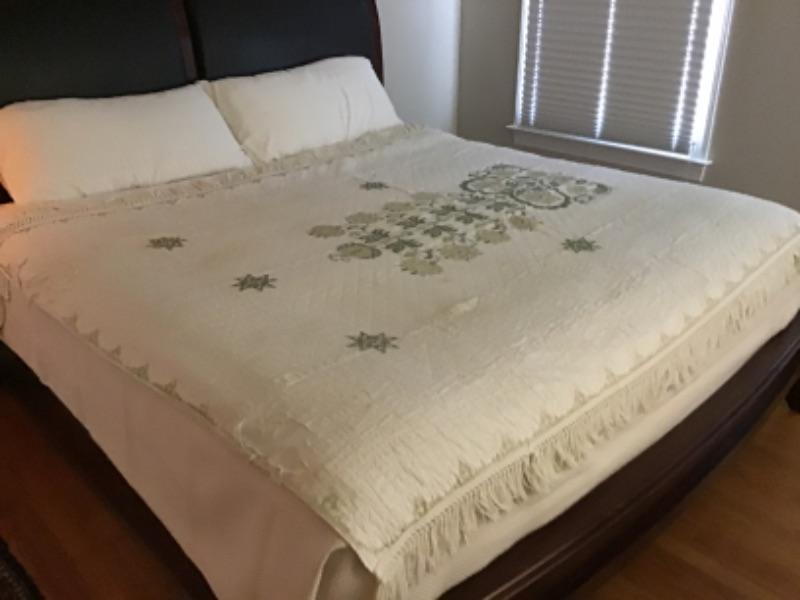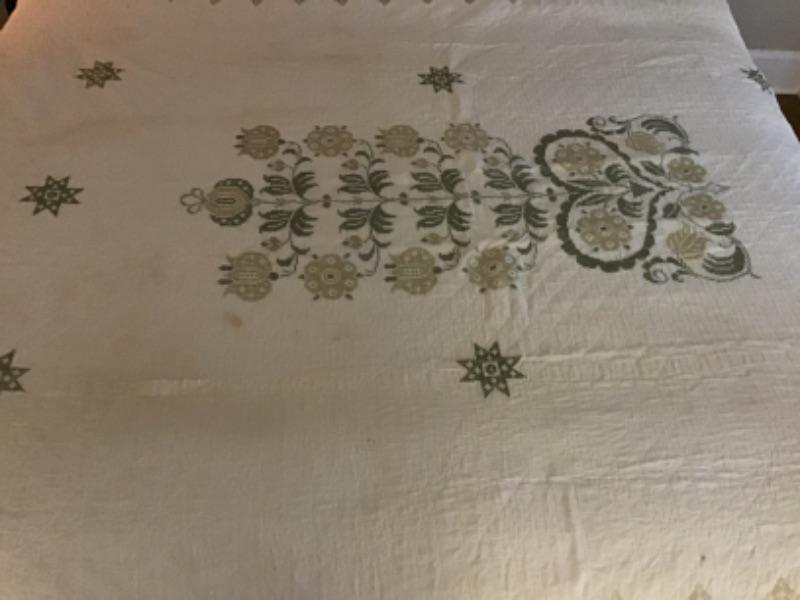 Antique Handmade Mennonite Cross Stitched Bedspread