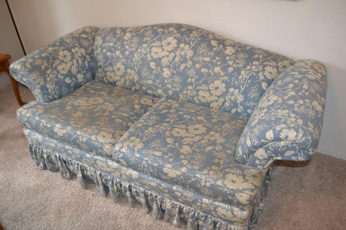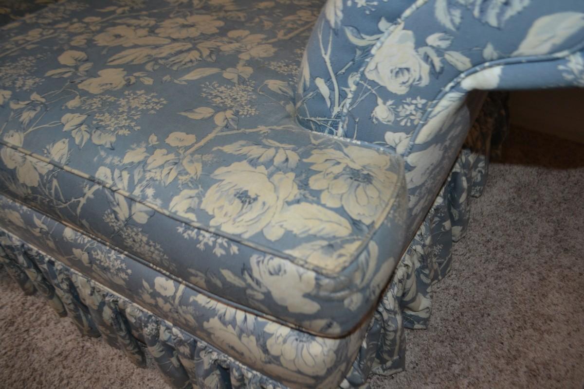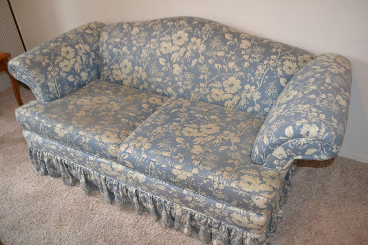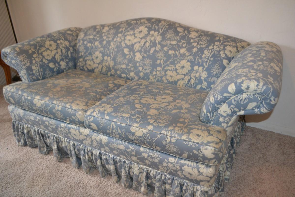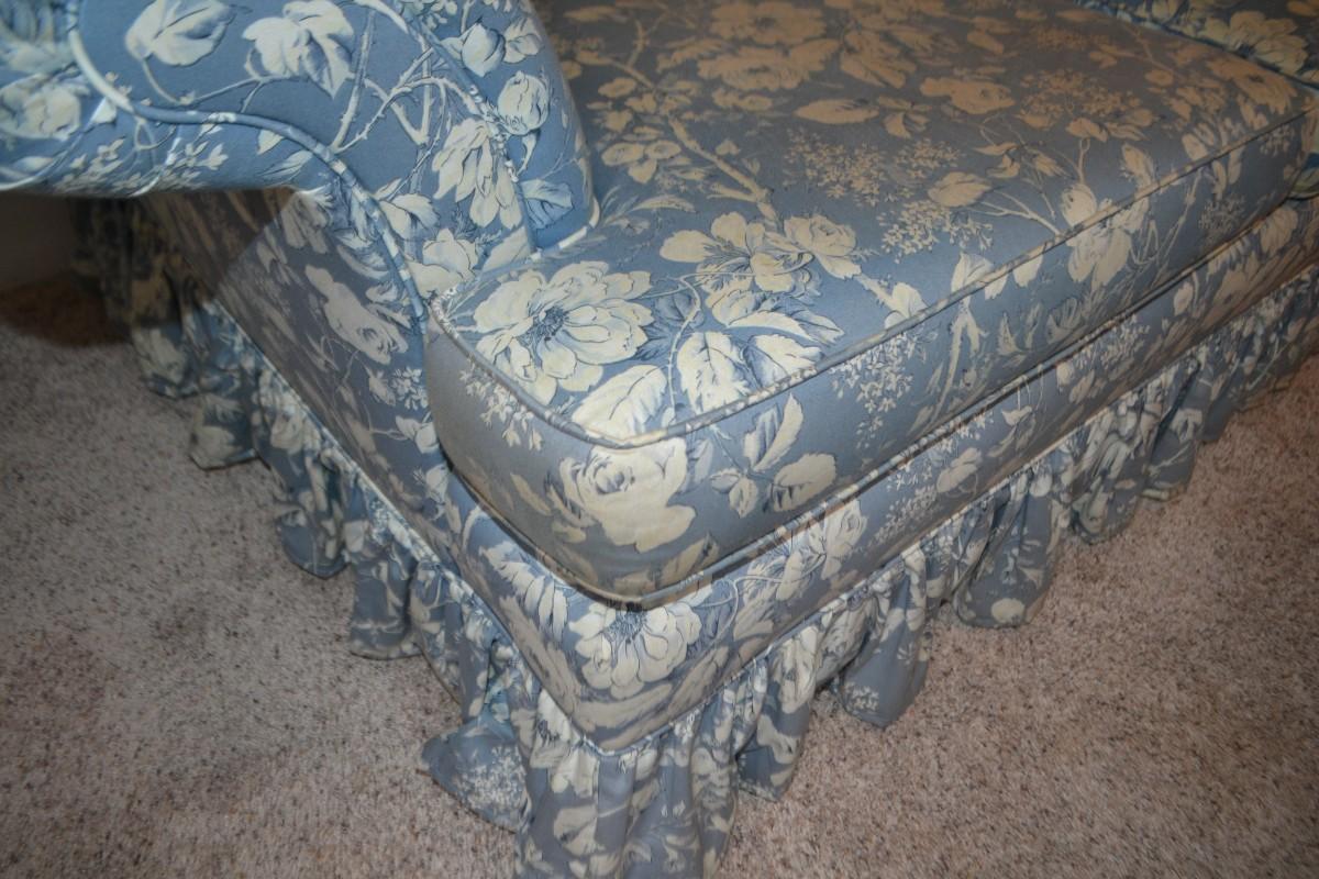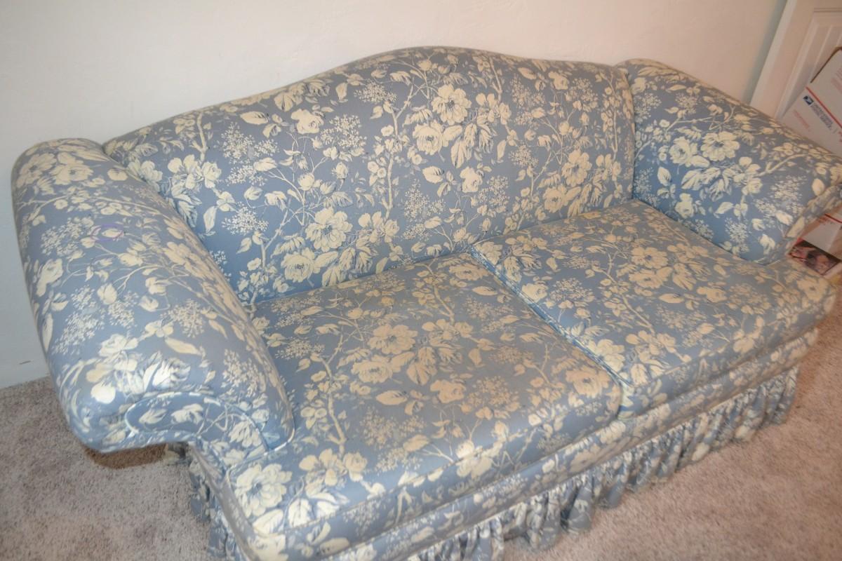LOT 627. BLUE FLORAL PRINT LOVESEAT