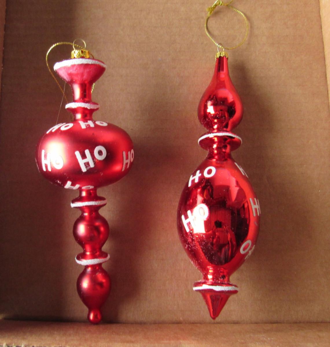 Lot 627: Two Long Red HoHoHo Christmas Ornaments