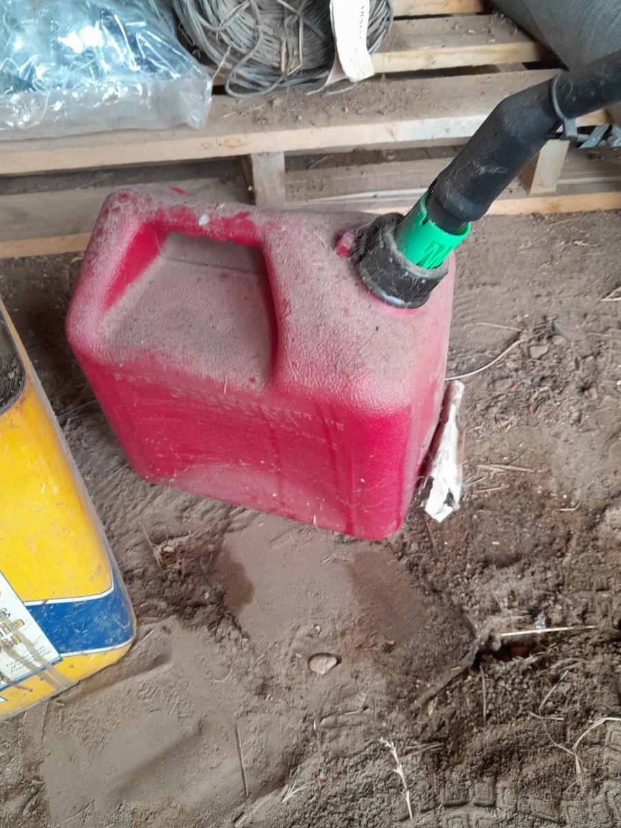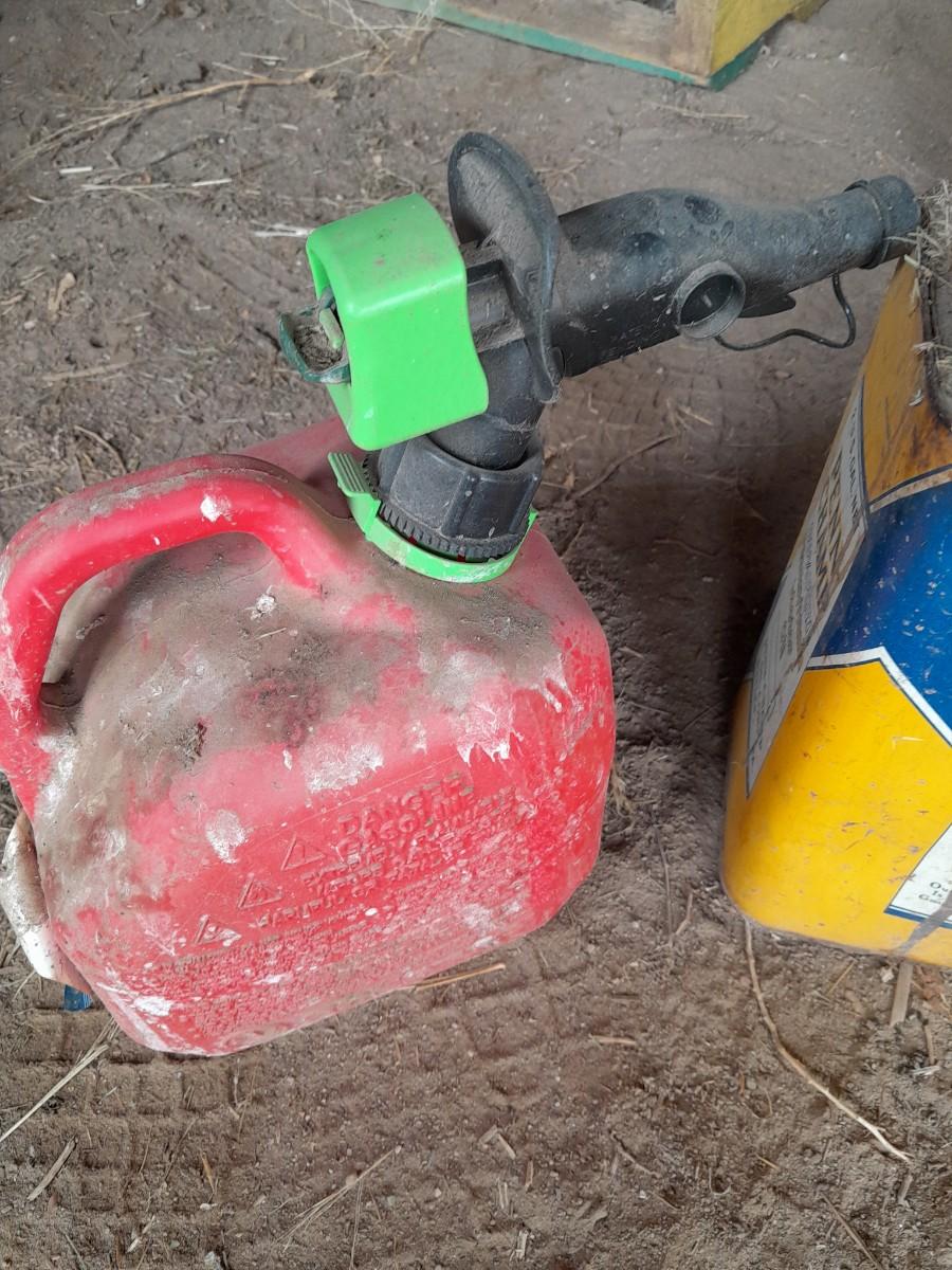 LOT 627 TWO GAS CANS AND A METAL PENNCHAMP OIL CAN (OS)