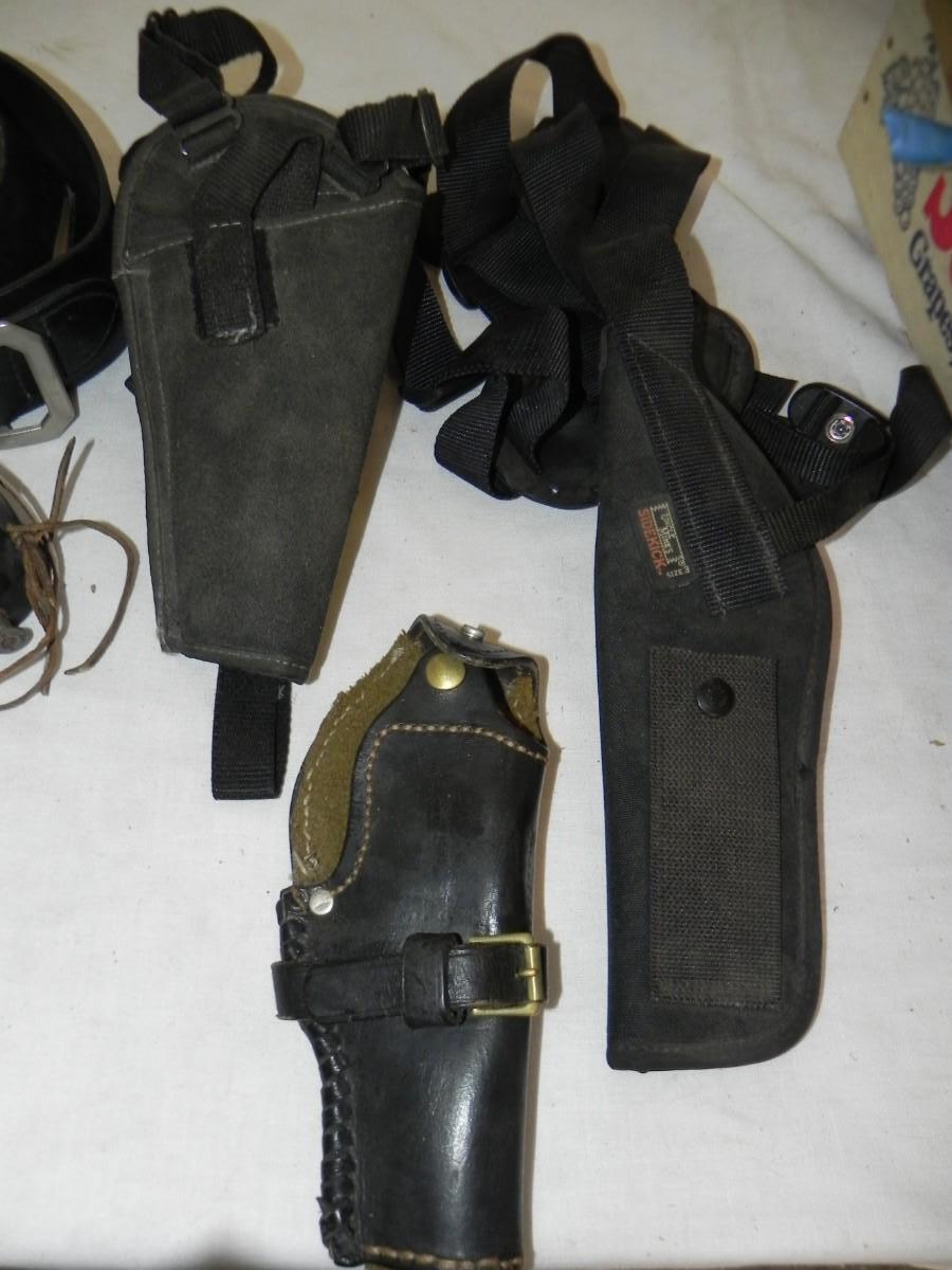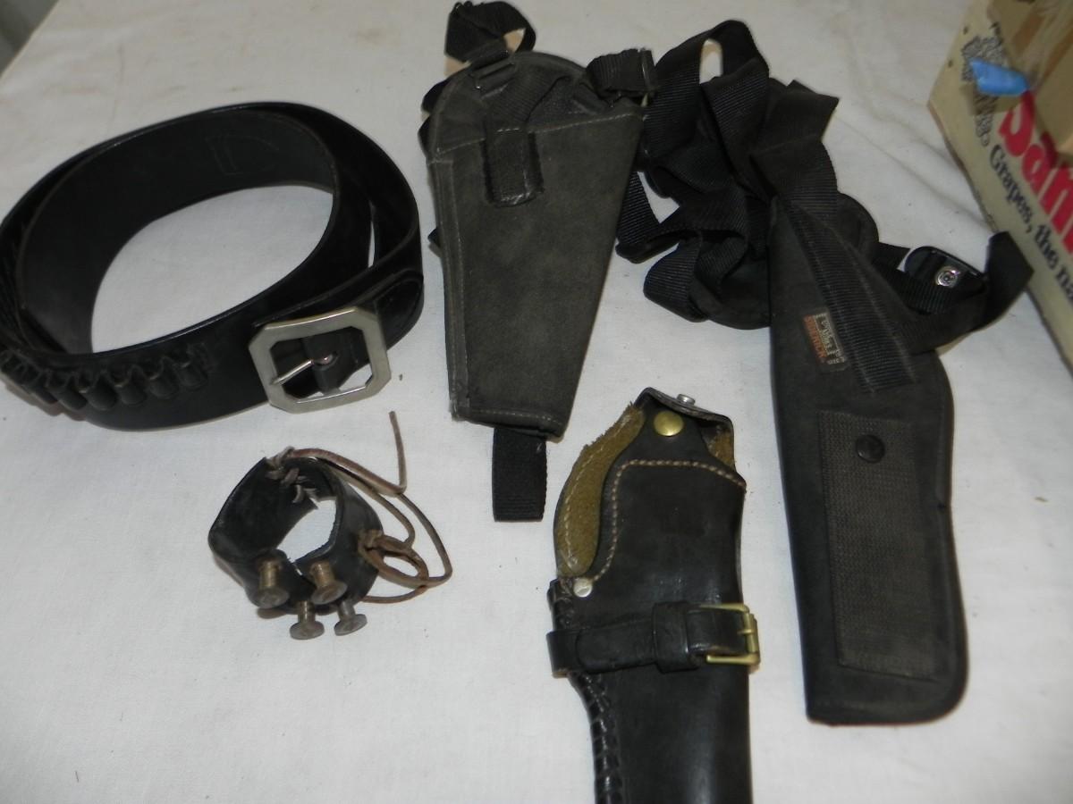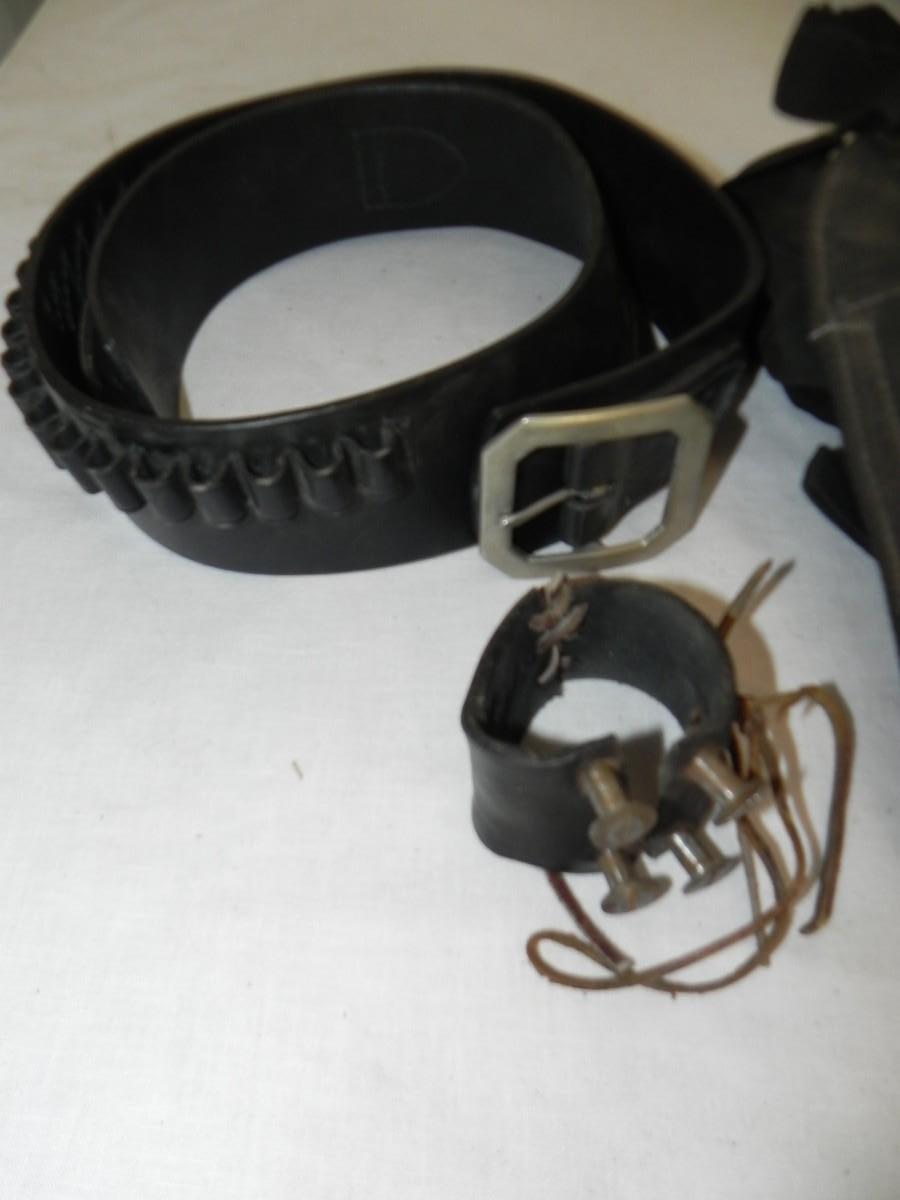 MADE OF BLACK LEATHER CUFF BAND- BELT- KNIFE AND GUN HOLDERS
