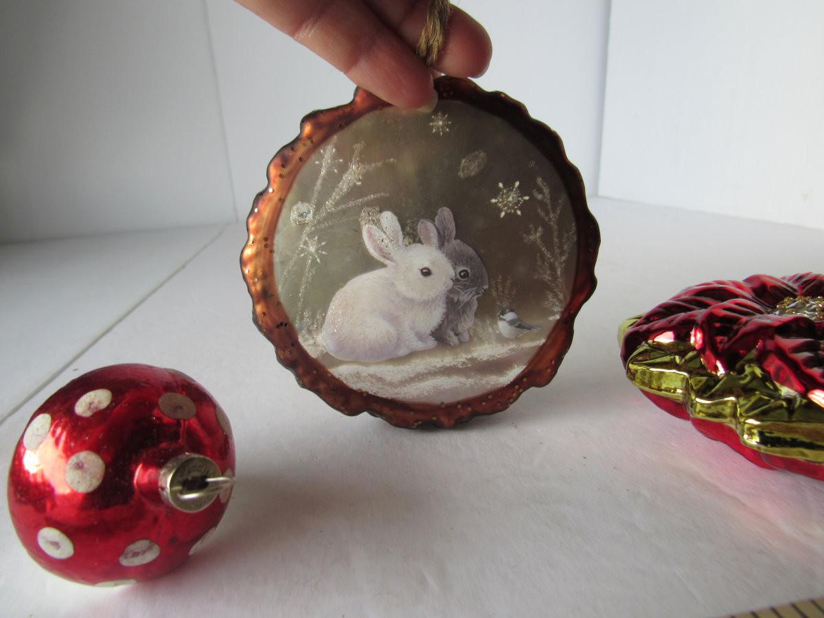 Lot 629: Three Figural Glass Christmas Ornaments