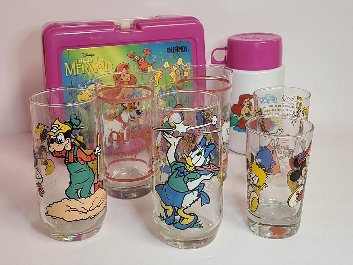 Mixed lot of vintage glasses, and a Little Mermaid lunchbox. These are pre-owned. Please see all pictures as they are the best representation of the items. The pictures show condition, measurements if taken, and what is included in the lot. Due to the large amount that we photograph and the time frame, we are not always able to take measurements. All items unless noted, are pre-owned and have been used. If you purchased furniture, you must bring help. We do not allow one person to carry large furniture out on their own. Bring help, tools and a truck for the safety of our client’s homes, and your personal safety. Company policy. Thank you.