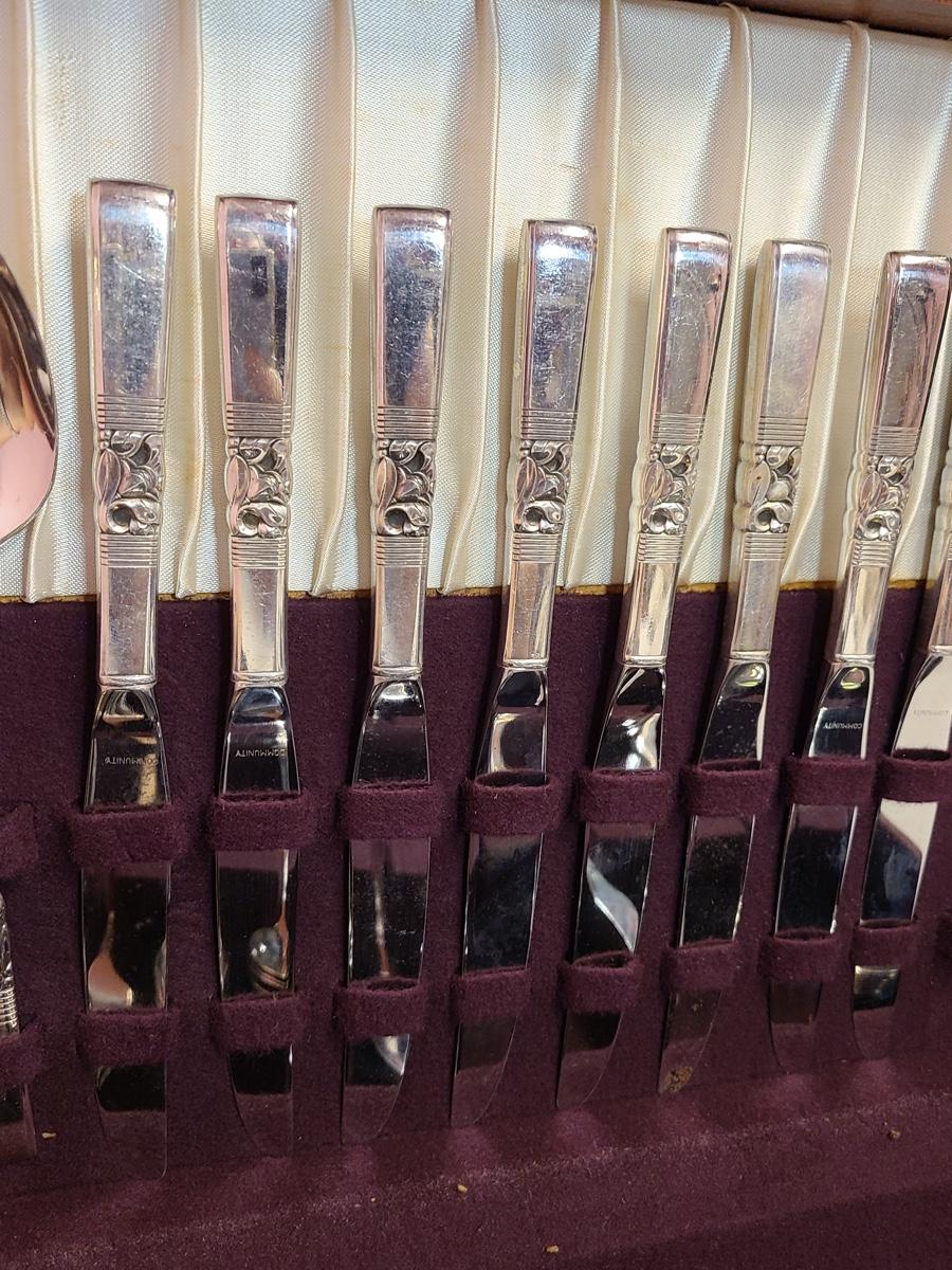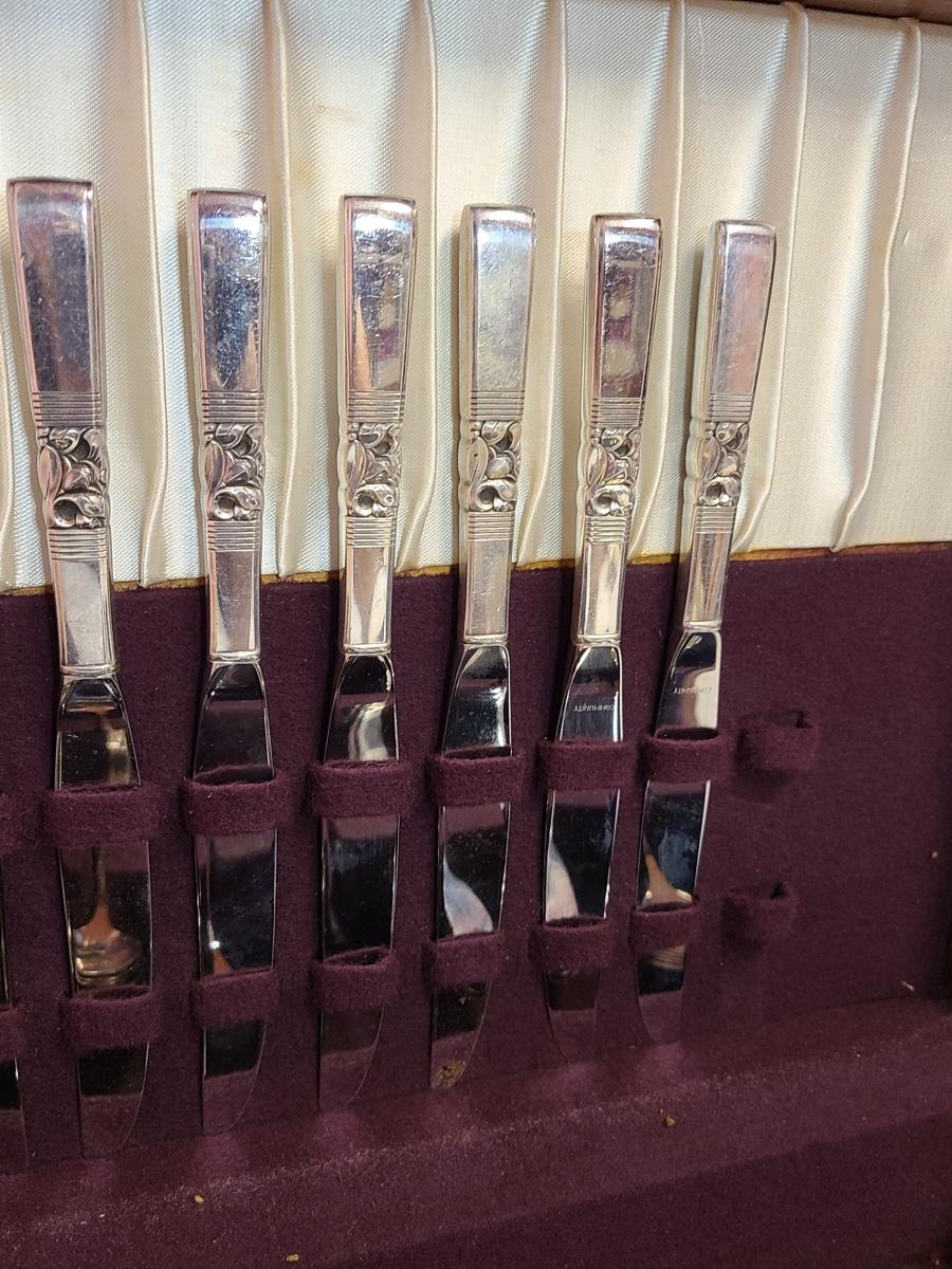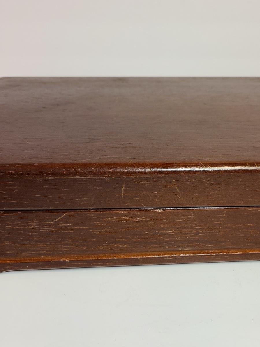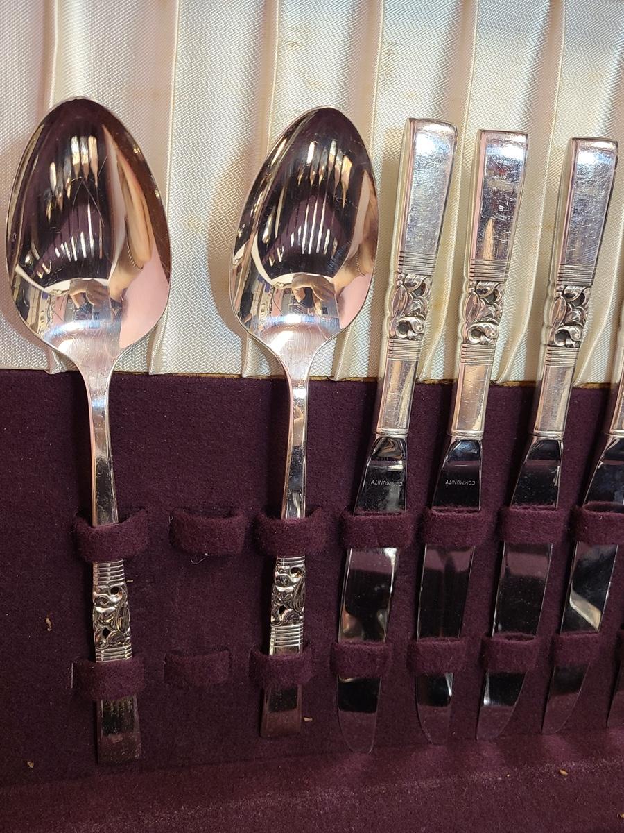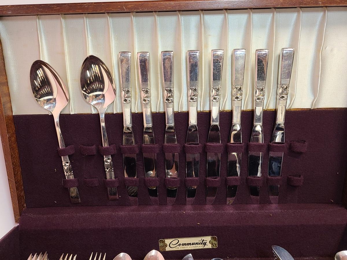 The box shows wear. The spoons all look to be the same size, except there are 8 soup spoons also. The wood box shows minor wear from storage. These are pre-owned. Please see all pictures as they are the best representation of the items. The pictures show condition, measurements if taken, and what is included in the lot. Due to the large amount that we photograph and the time frame, we are not always able to take measurements. All items unless noted, are pre-owned and have been used. If you purchased furniture, you must bring help. We do not allow one person to carry large furniture out on their own. Bring help, tools and a truck for the safety of our client’s homes, and your personal safety. Company policy. Thank you.