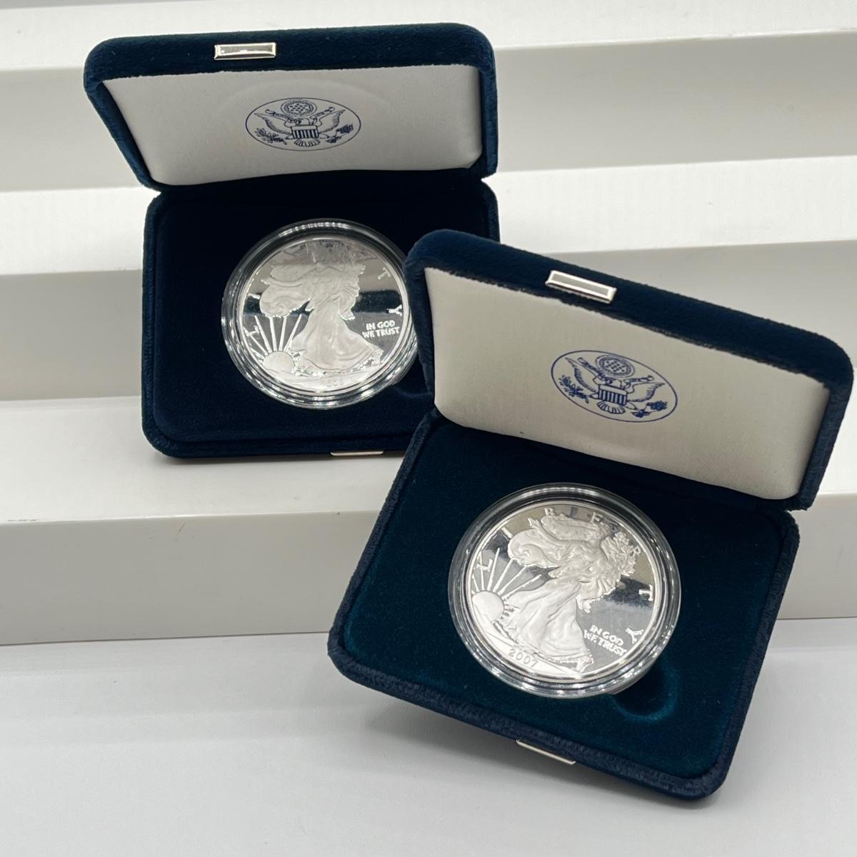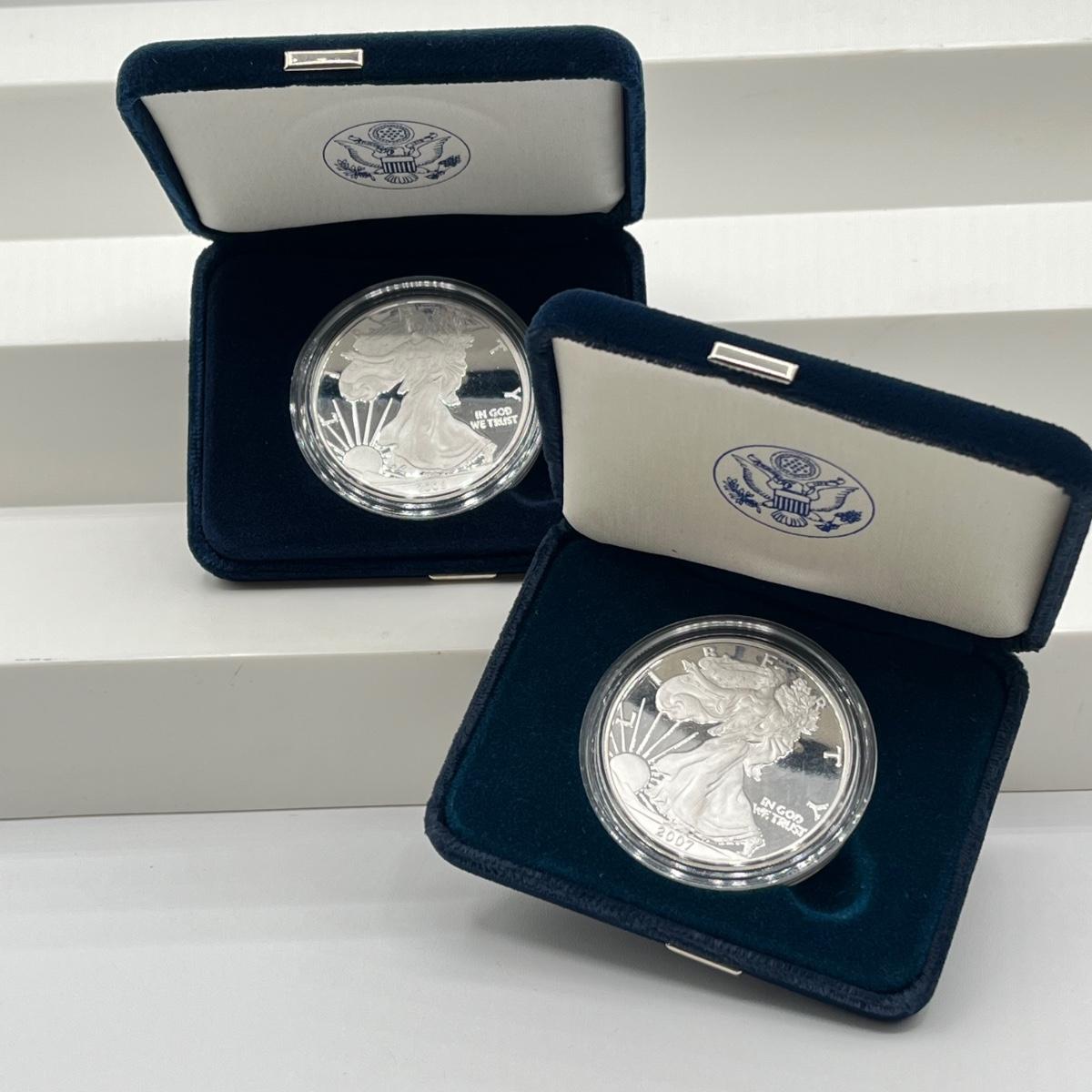 LOT 62F: American Eagle One Ounce 99.9 Silver Proof Coins - 2007 & 2008
