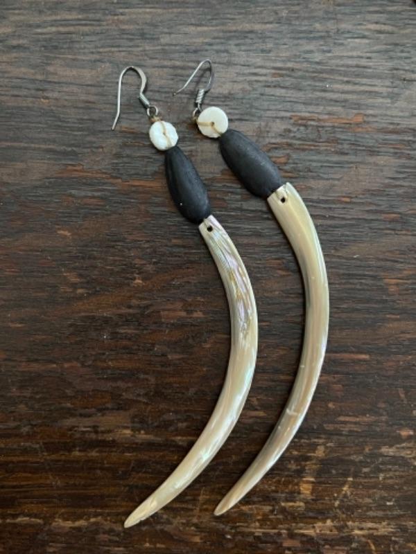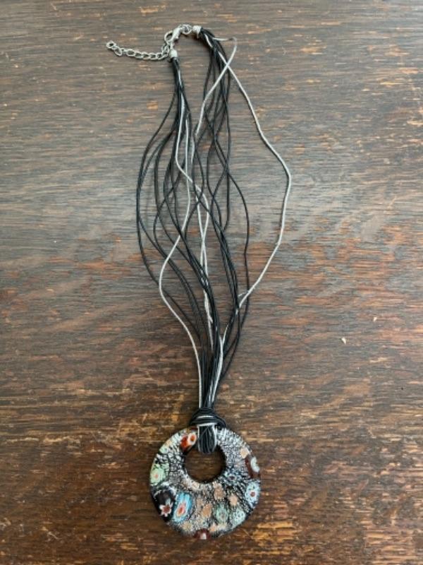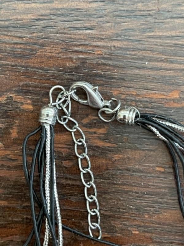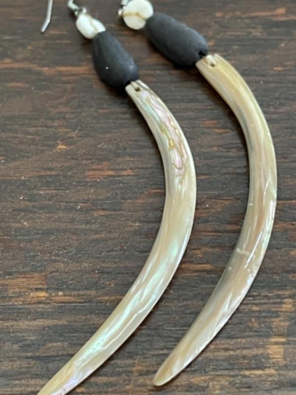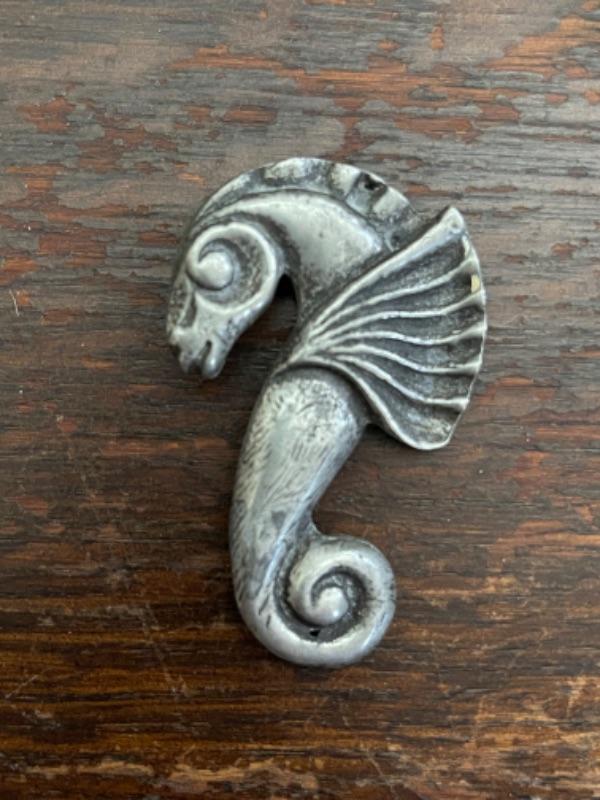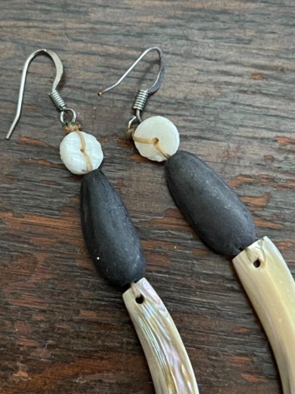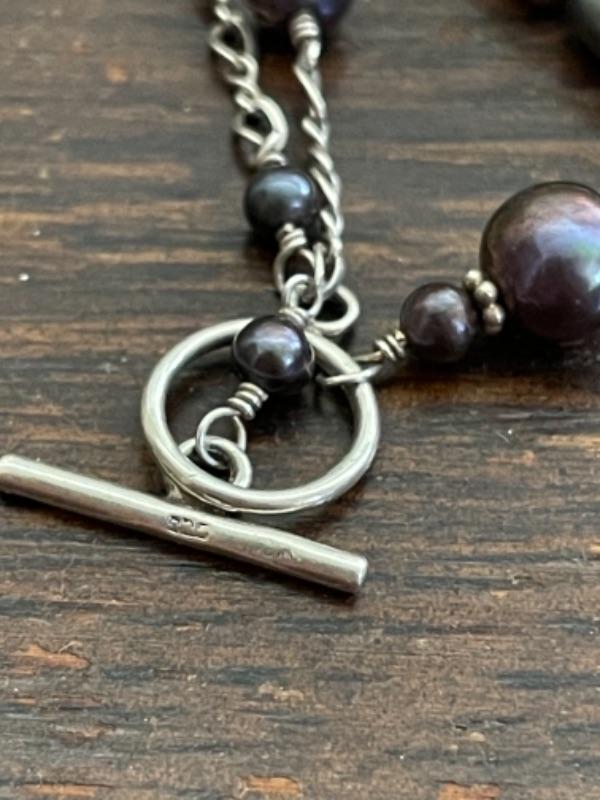 Lot 62LD. Assorted vintage jewelry“”pearls, sterling silver, fused glass, mother of pearl, brass“”4 necklaces, ring (size 7), pair of earrings (mother of pearl), one seahorse brass brooch; one 3-strand beaded chain necklace; one pearl and sterling silver necklace (black/purple pearls); one (black/purple) pearl necklace with pendant; one fused glass pendant necklace with cord; one pair of dangling mother of pearl (abalone) earrings 4” long); one sterling silver and pearls ring (black and white) (size 7)--$85