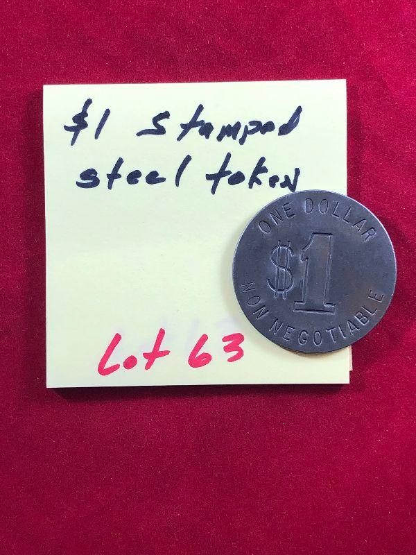 Lot #63 $1 Stamped Steel Trade Token, Unknown Origin