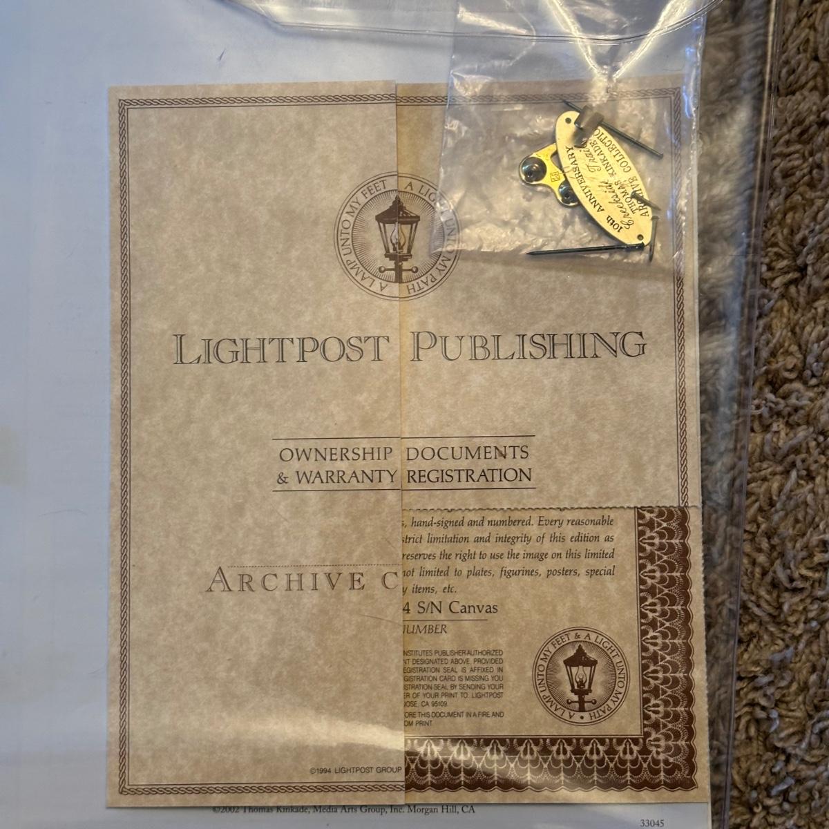 LOT 63: 10th anniversary Archive Collection Creekside Trail Signed Print by Thomas Kinkade w/ Certificate Of Authenticity