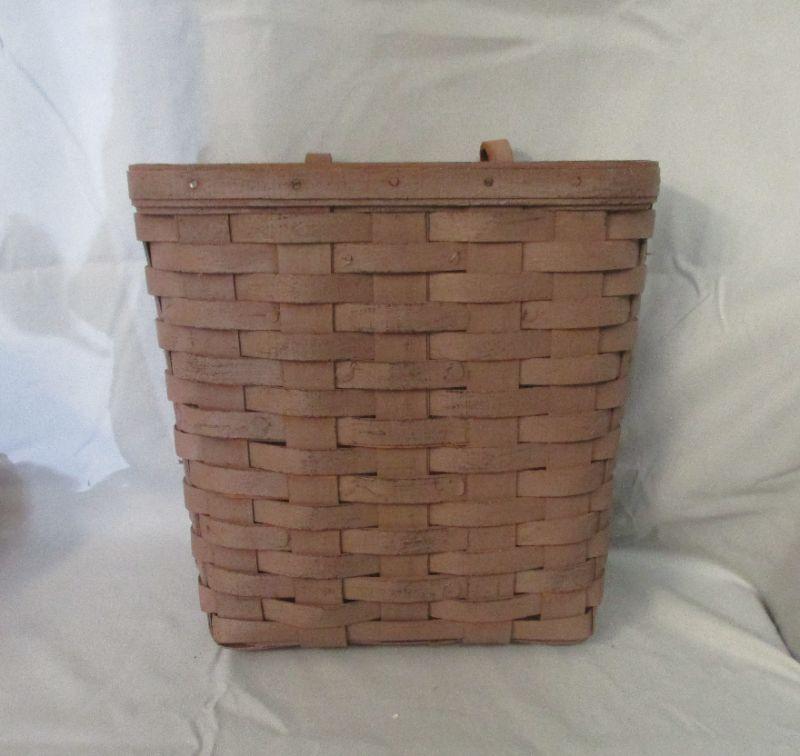This basket is in excellent condition, but it has been painted with a shade of brown paint. It is 9.75" tall and 10" at the widest.