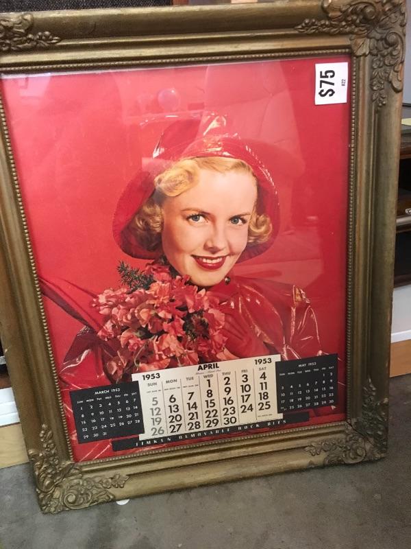 Lot 63 1953 Framed Calendar in gold gilded frame 19" x 24"