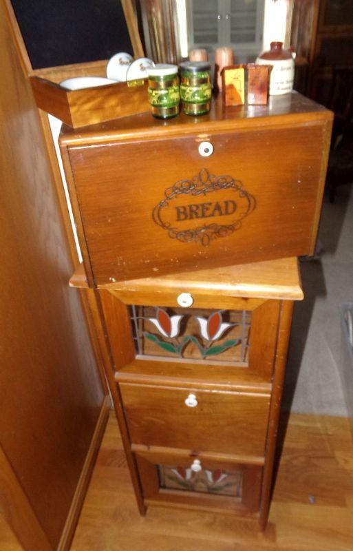 3 DOOR (2 HAVE PAINTED PLEXI-GLASS FRONTS) 3 COMPARTMENT WOODEN STORAGE BIN 15" X 10" X 33"