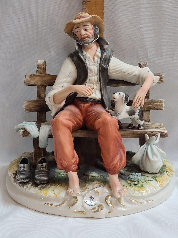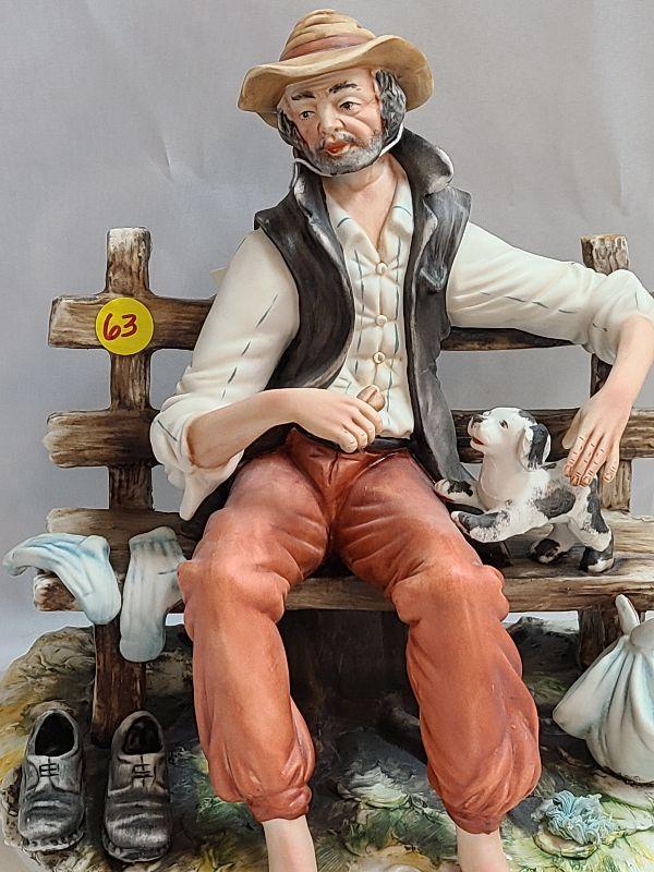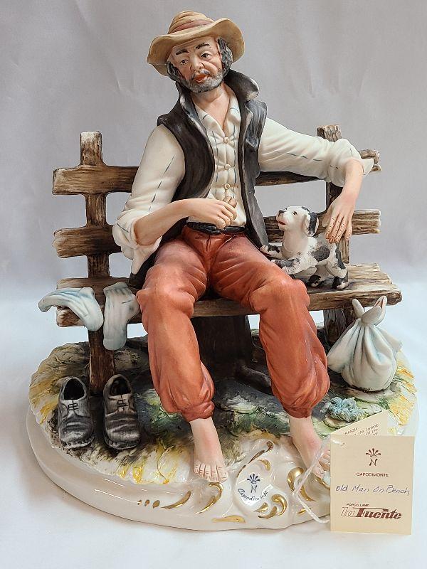 Lot 63: Italian Old Man on Bench Capodimonte detailed figurine