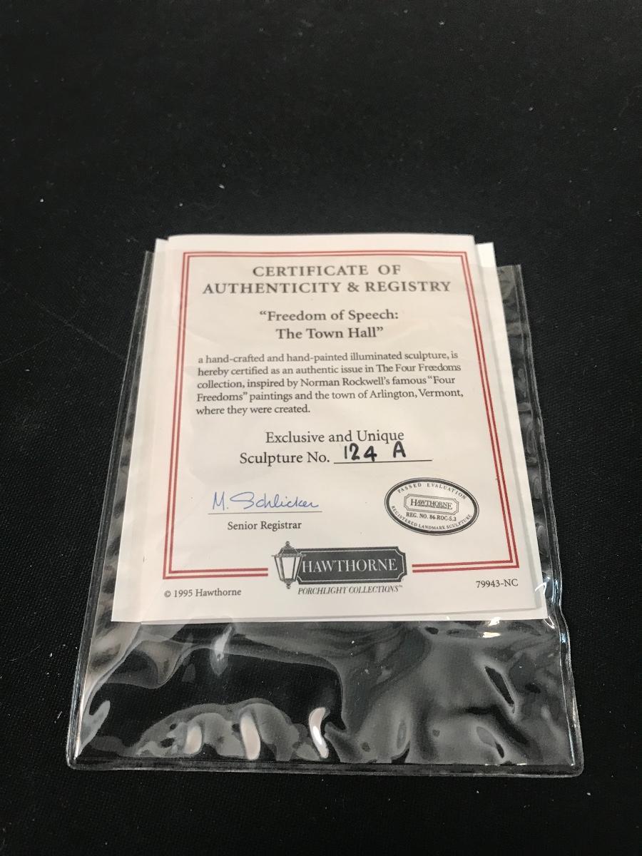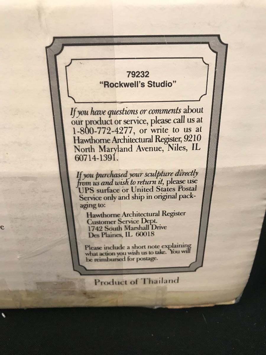 Hawthorne Collectibles Norman Rockwell Sculptures - Town Hall, Bell Tower & Rockwell's Studio. Please see all pictures as they are the best representation of the items. The pictures show condition, measurements if taken, and what is included in the lot. Due to the large amount that we photograph and the time frame, we are not always able to take measurements. All items unless noted, are pre-owned and have been used. If you purchased furniture, you must bring help. We do not allow one person to carry large furniture out on their own. Bring help, tools and a truck for the safety of our client’s homes, and your personal safety. Company policy. Thank you.