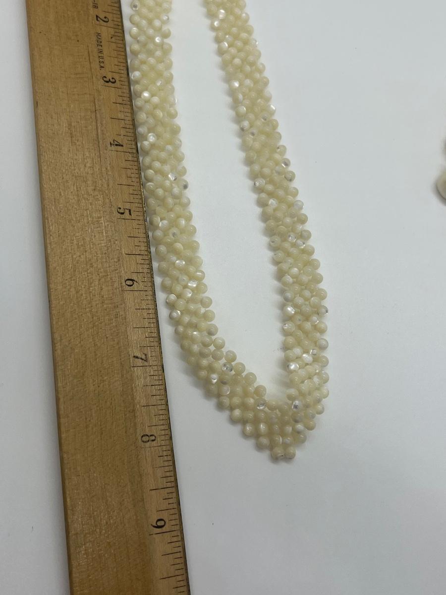 Mother of pearl designed jewelry! The pictures show condition, measurements if taken, and what is included in the lot. Due to the large amount that we photograph and the time frame, we are not always able to take measurements. All items unless noted, are pre-owned and have been used, and are untested. Thank you