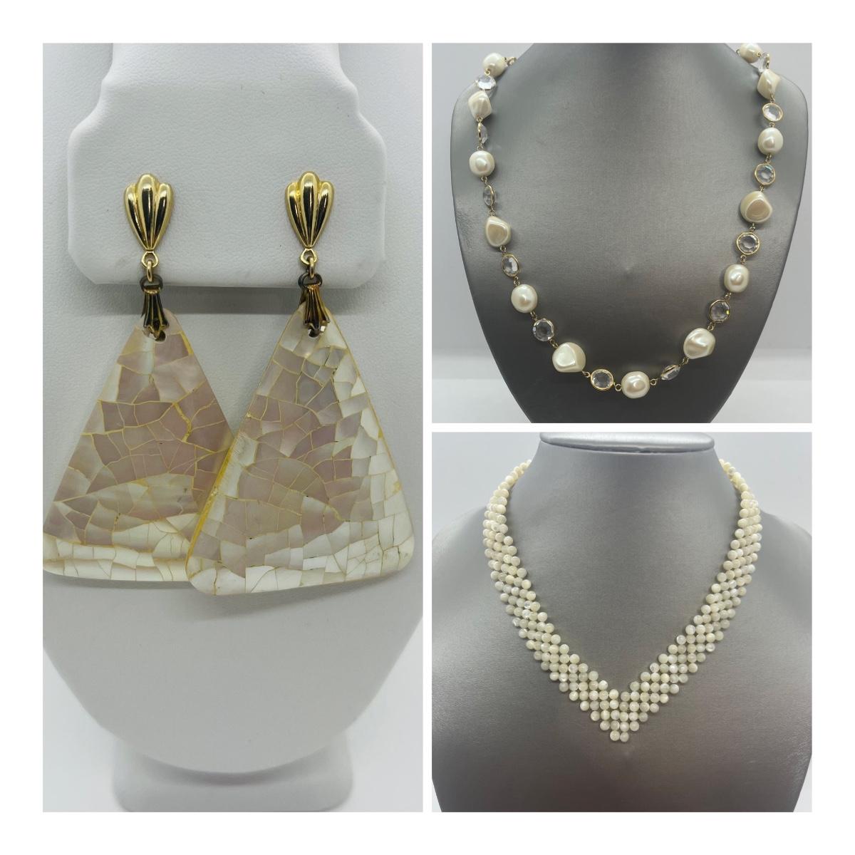 Lot 63: Vintage Chunky Mother of Pearl Shell Earrings and More