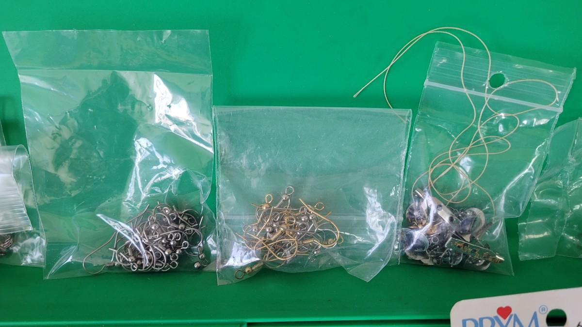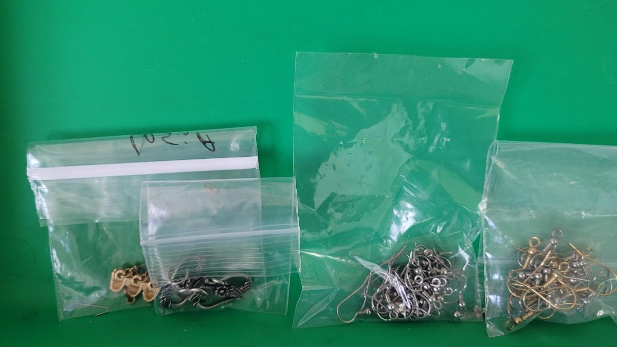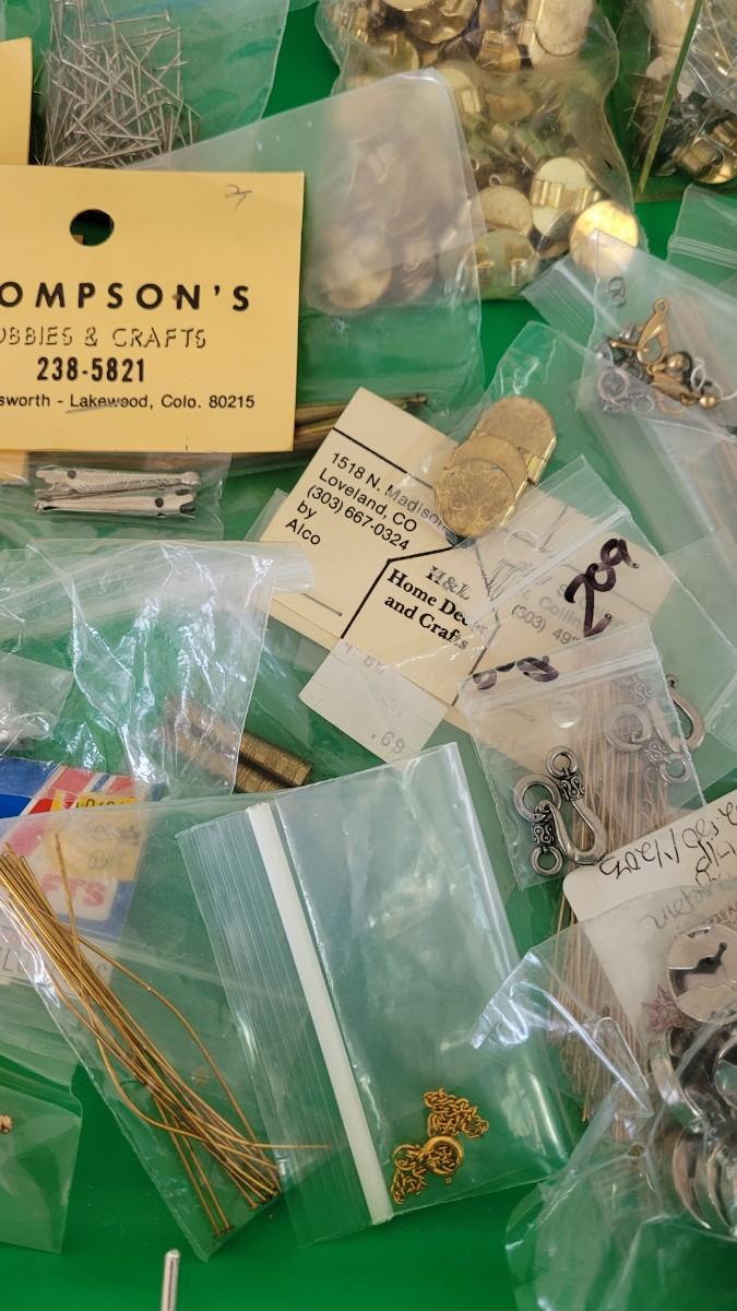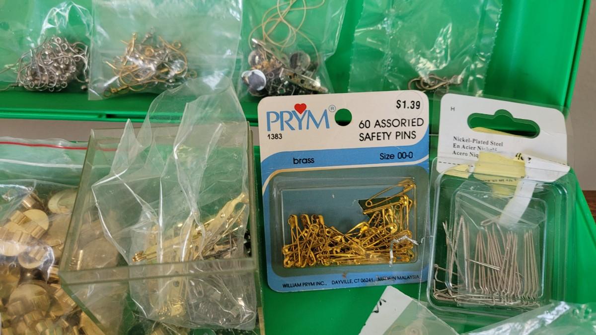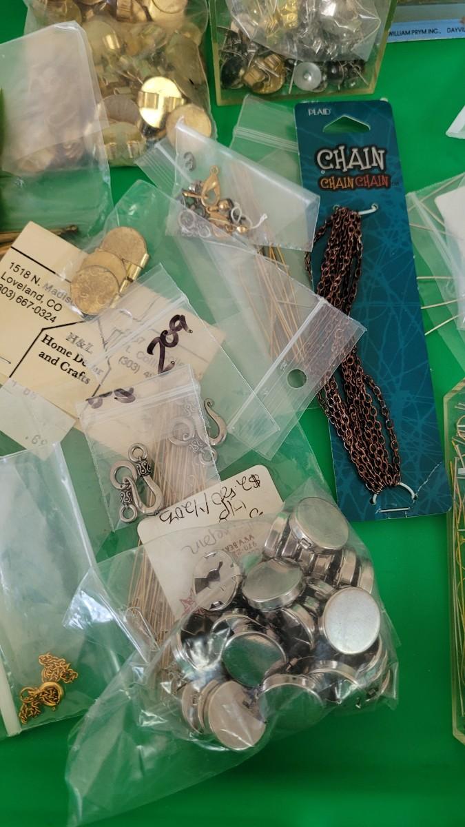 This green carry friendly box is filled with Earring backs/Hooks ect., Necklace/Bracelet Clasps, Bolo Ends and more!