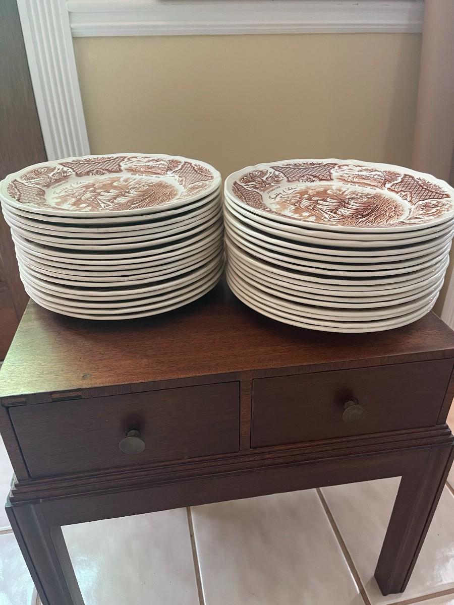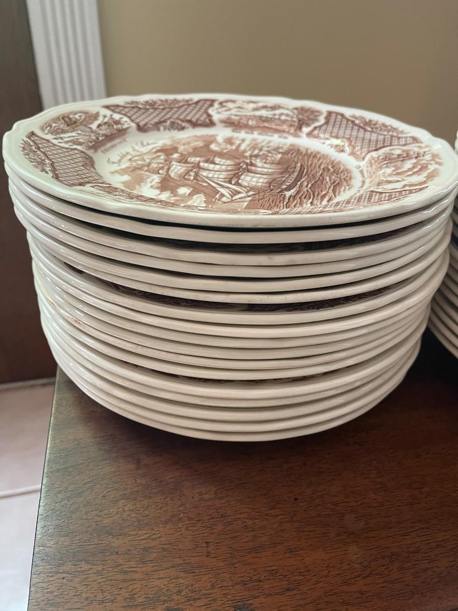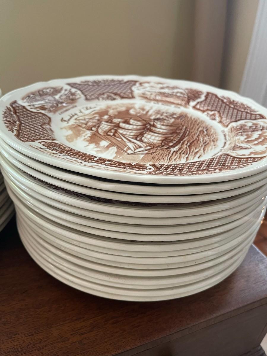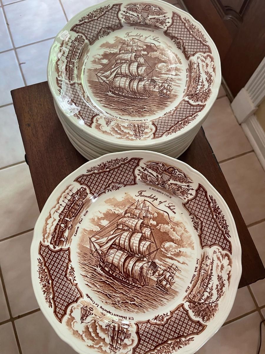 LOT 83  - Dinner Plates, Friendship of Salem, Alfred Meakin, Fair Winds, Set of 33