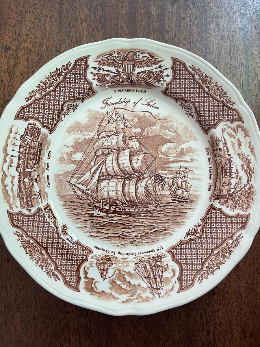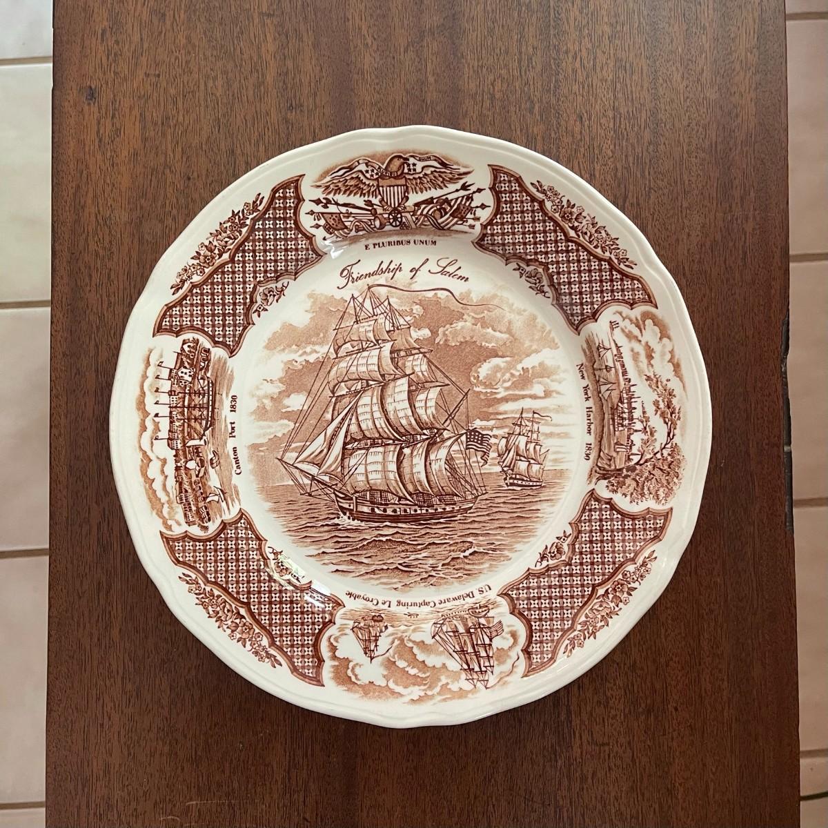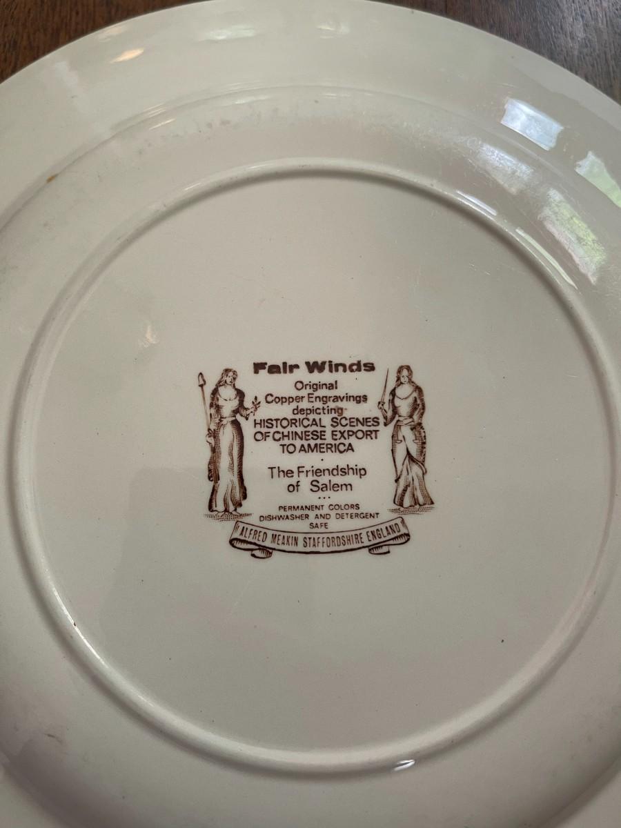 Alfred Meakin Fair Winds, Brown, "Friendship of Salem", Dinner Plates. Staffordshire, England.