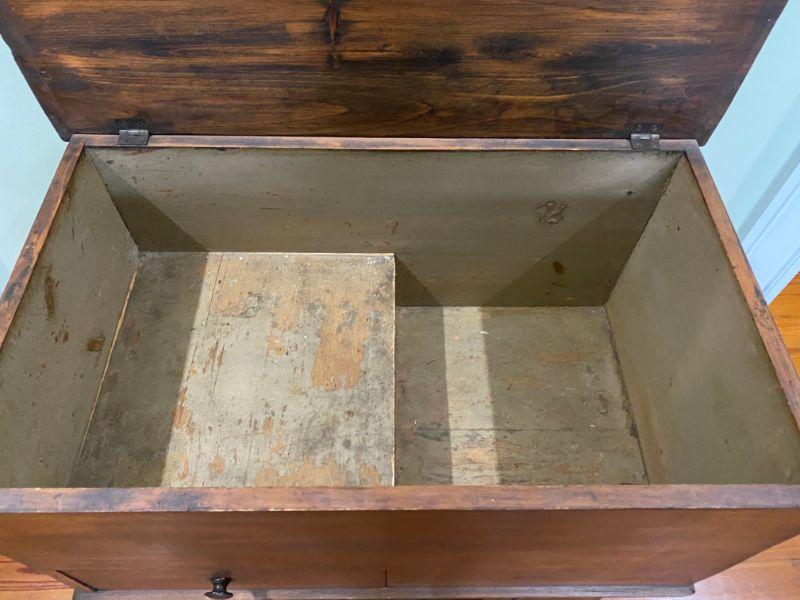 Antique Pine Commode Cabinet measures 29.5" x 17.5" deep and 31" tall