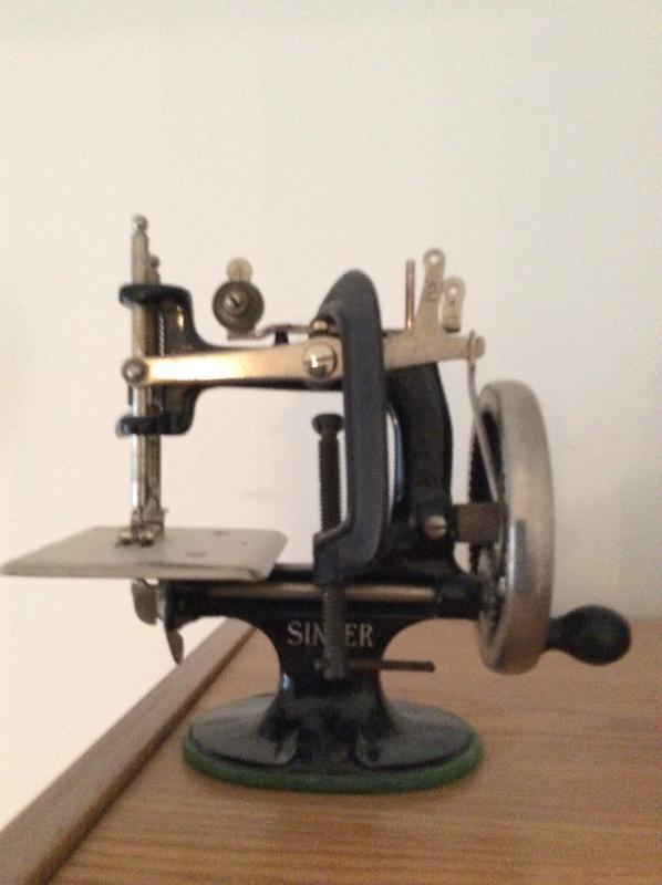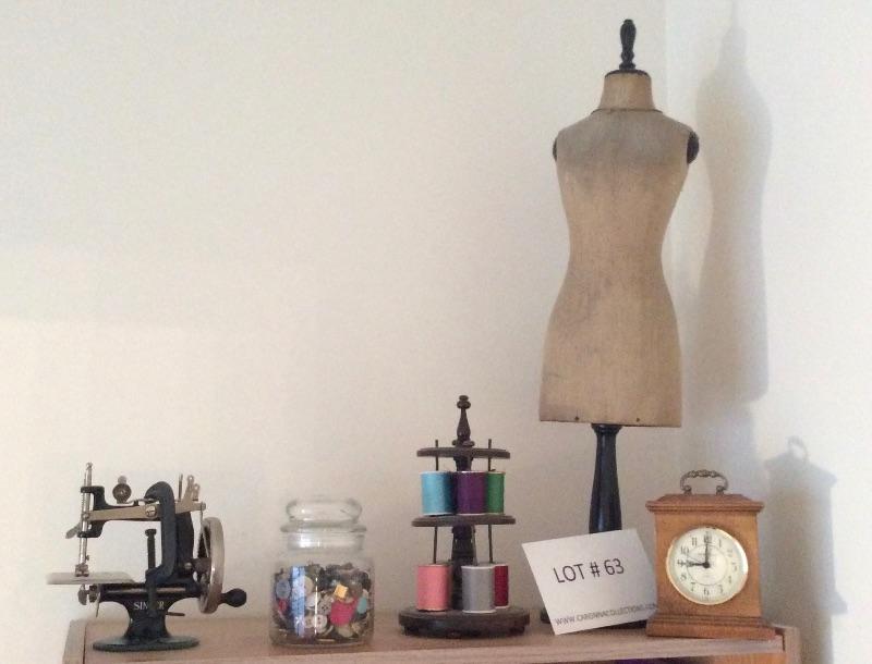 Antique Thread Carousel, Mini hand crank sewing machine , Childs size mannequin