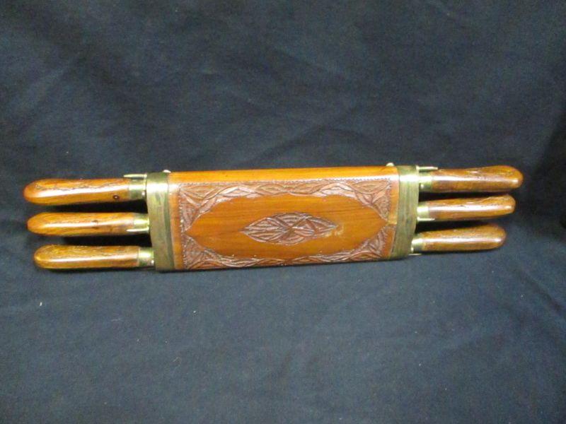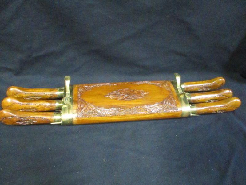 Lot 63 - Hand-Carved Wood with Brass Cutlery Set