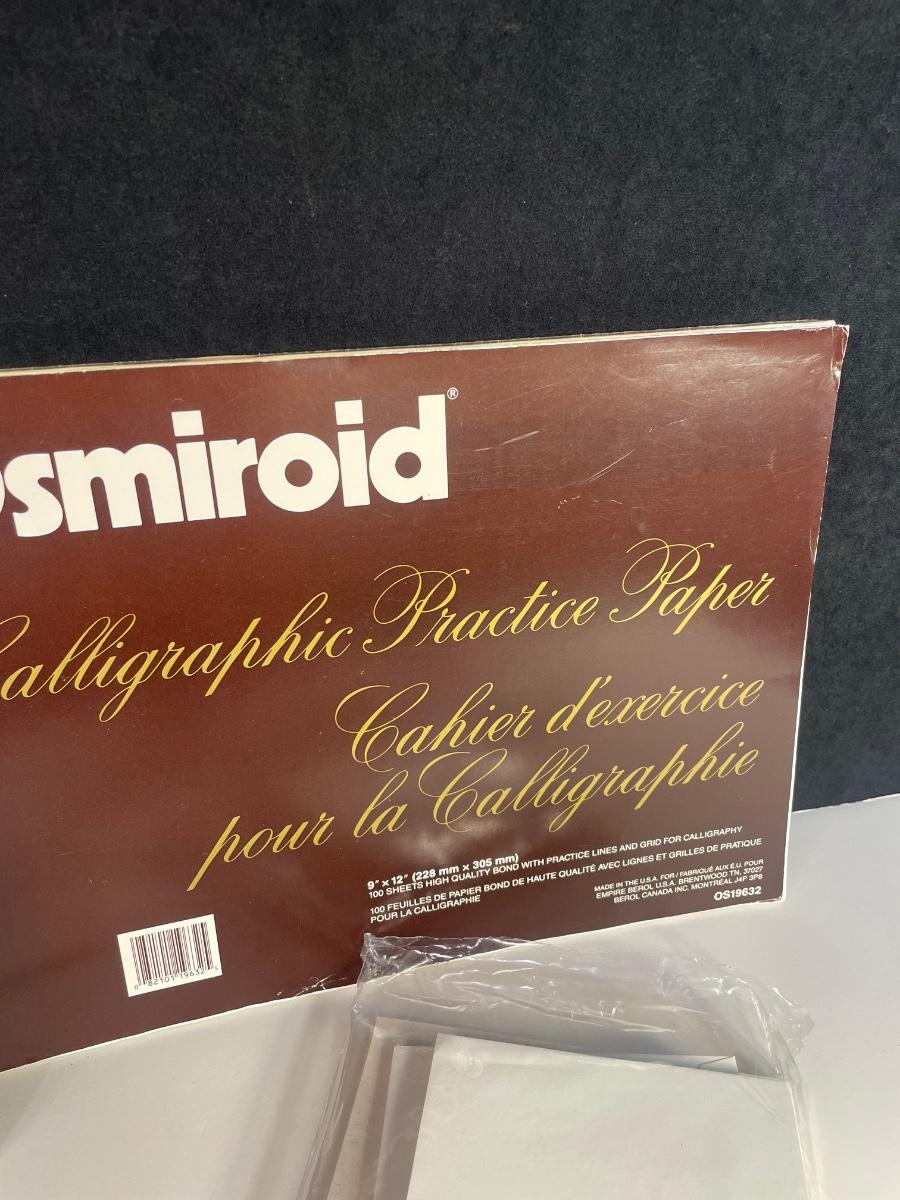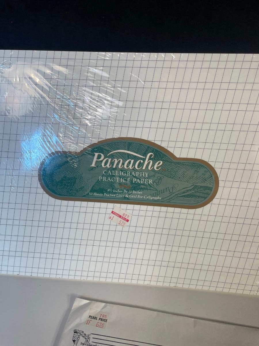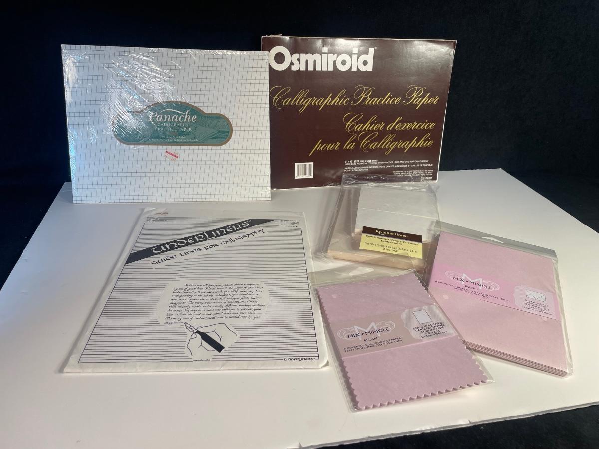 Two pads of calligraphy practice paper (one unopened), blank cards w/envelopes and a pack of lined calligraphy paper