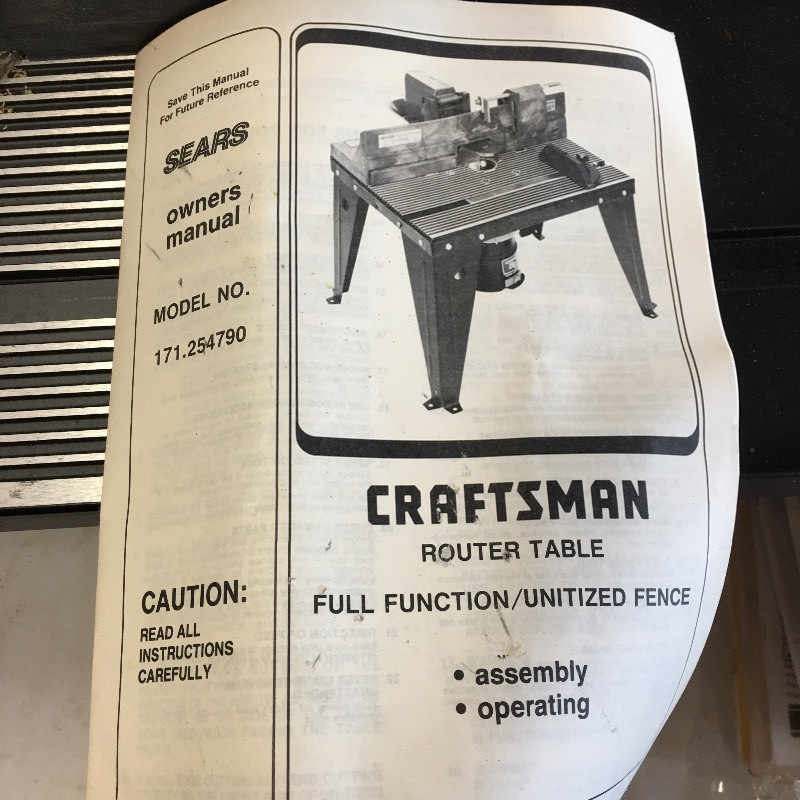 Craftsman router and router table comes complete with owners manual. Router table measures 13” x 34” x 15”.