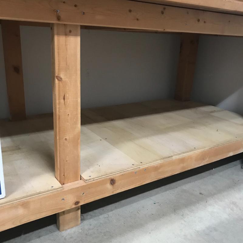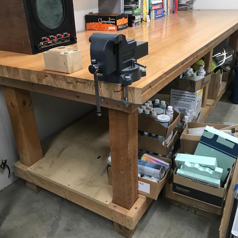 Very large Workbench with lower shelf and mounted vice on one end. Table will have to be disassembled and walked around home to driveway up a slight hill. Condition of bench is very good and measures 133” x42” x36”. It is heavy and even disassembled you will need help to move it. ST staff will not be able to help in moving it. Other items pictured on workbench or not included in this lot. Only bench and vice. Local pick up in Asheville, NC only.