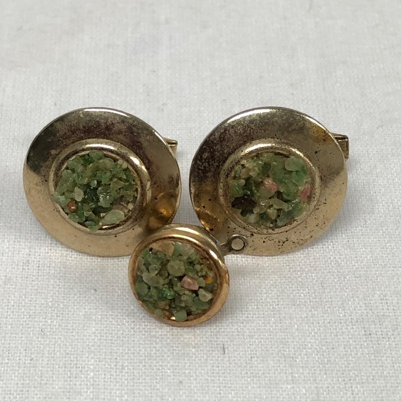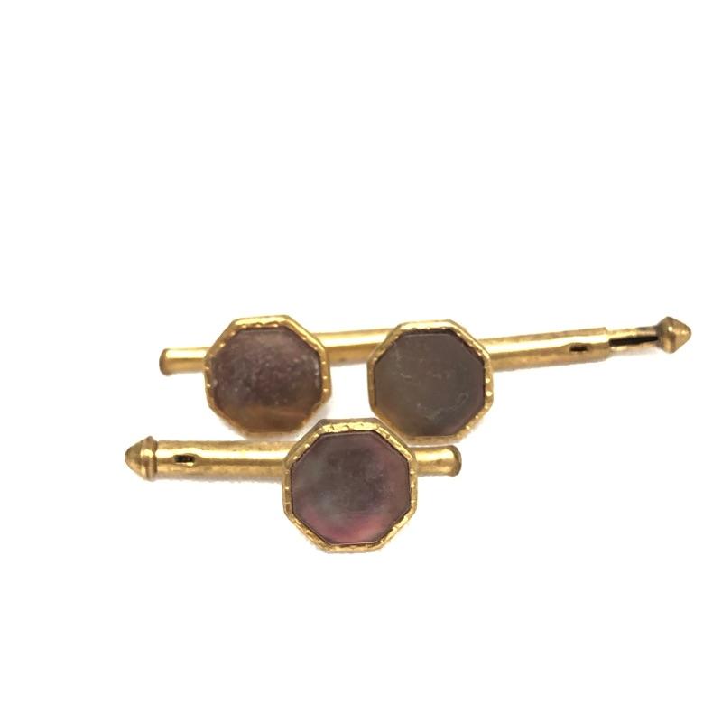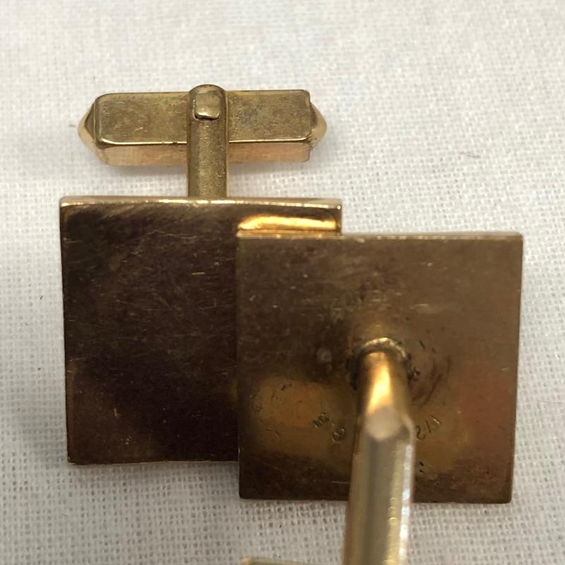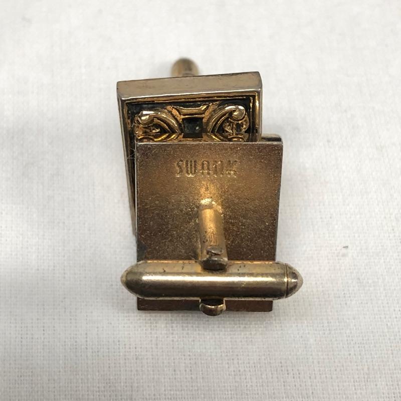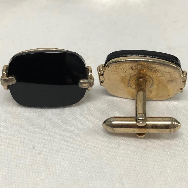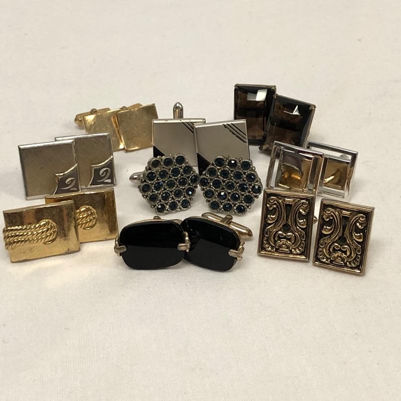 This extensive assortment of cuff links suitable for a myriad of different occasions includes 8 pairs of Swank brand cuff links. One pair of Krementz brand cuff links. The pair with dark blue shiny stone and gold colored metal design around it is missing a piece to secure one of the cuff links see photos. The lot also includes to sets of cuff links that have a matching tie tack, and a nice set of 3 tuxedo buttons. There are some very cool pieces here without any known markings like the pair of cuff links with the tigers eye stones.