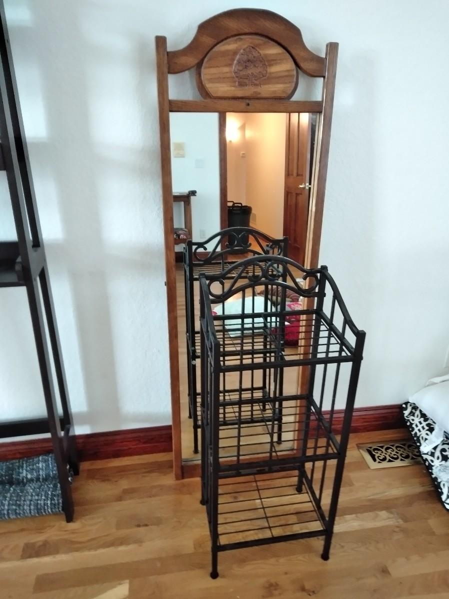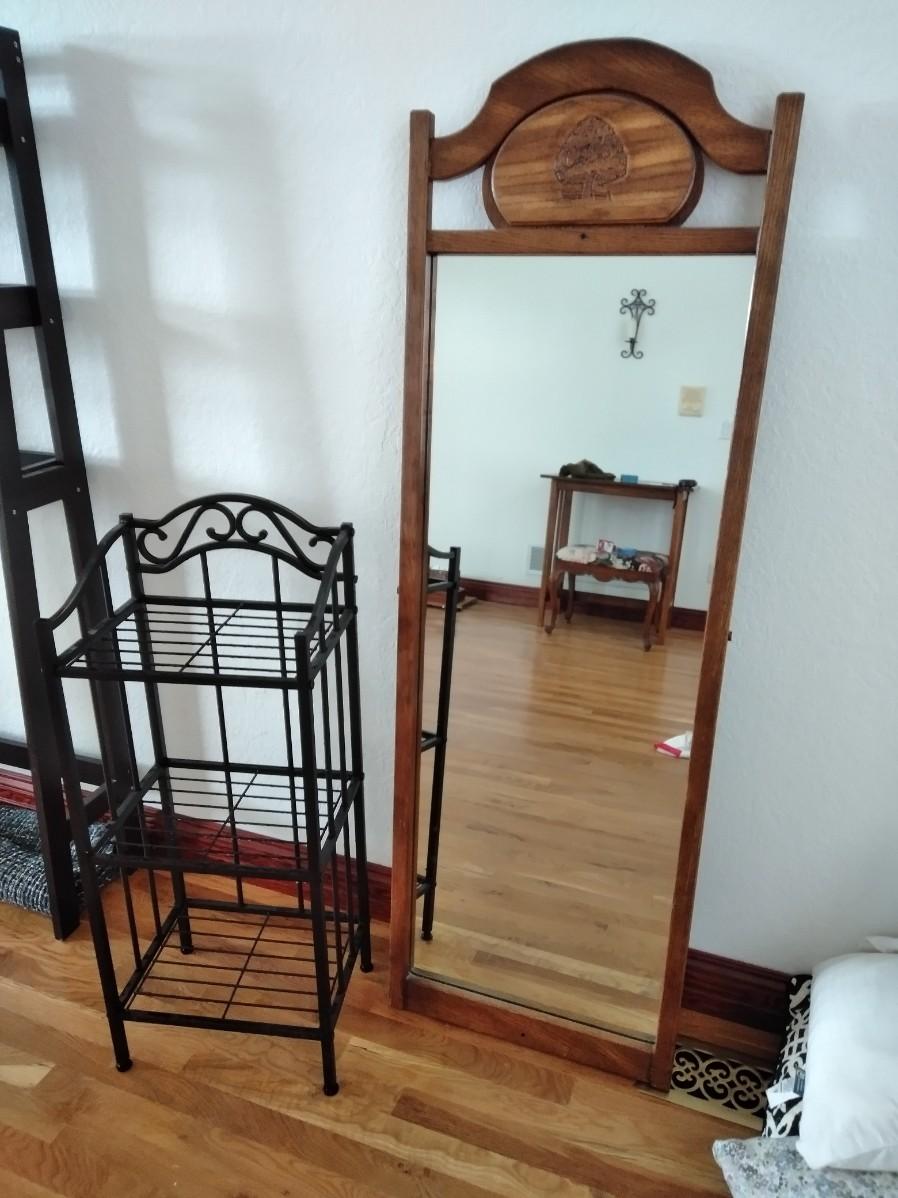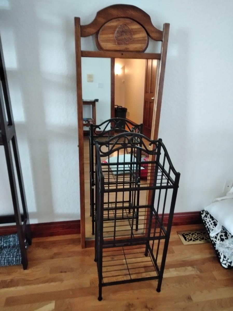 LOT 63 METAL SHELF, AND LONG MIRROR (HU)