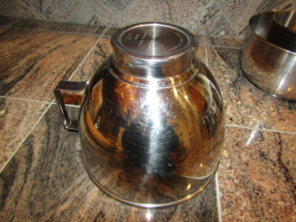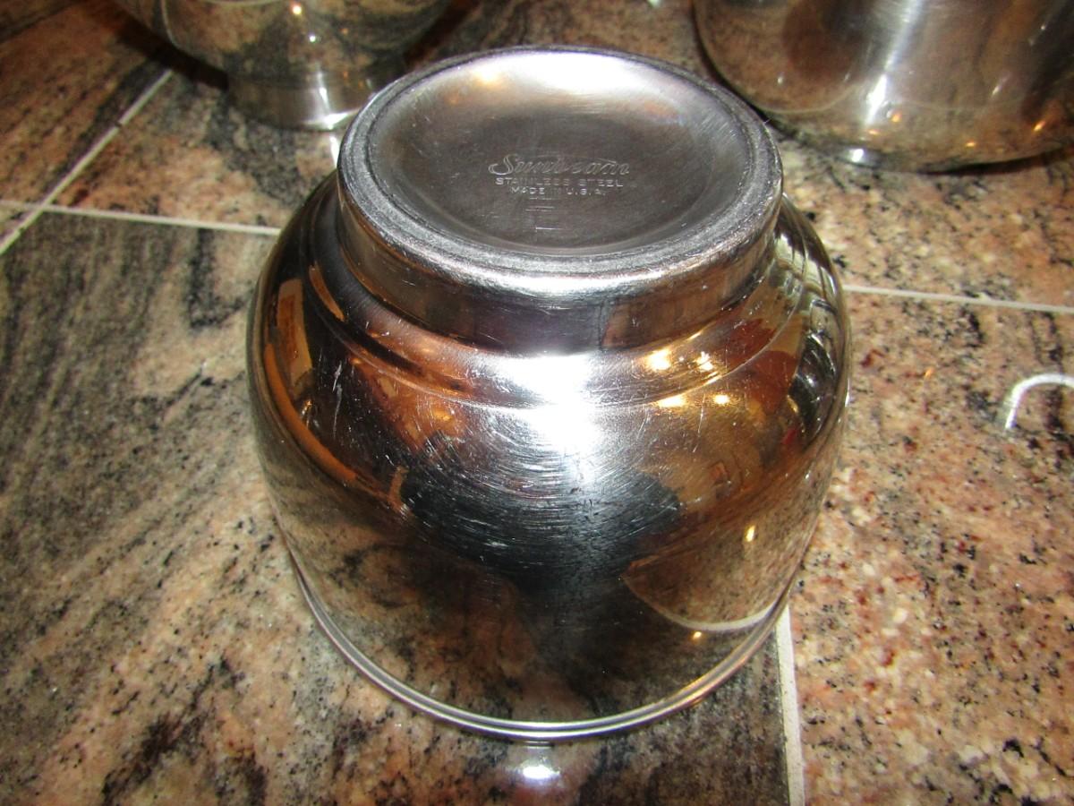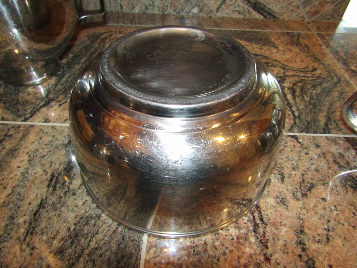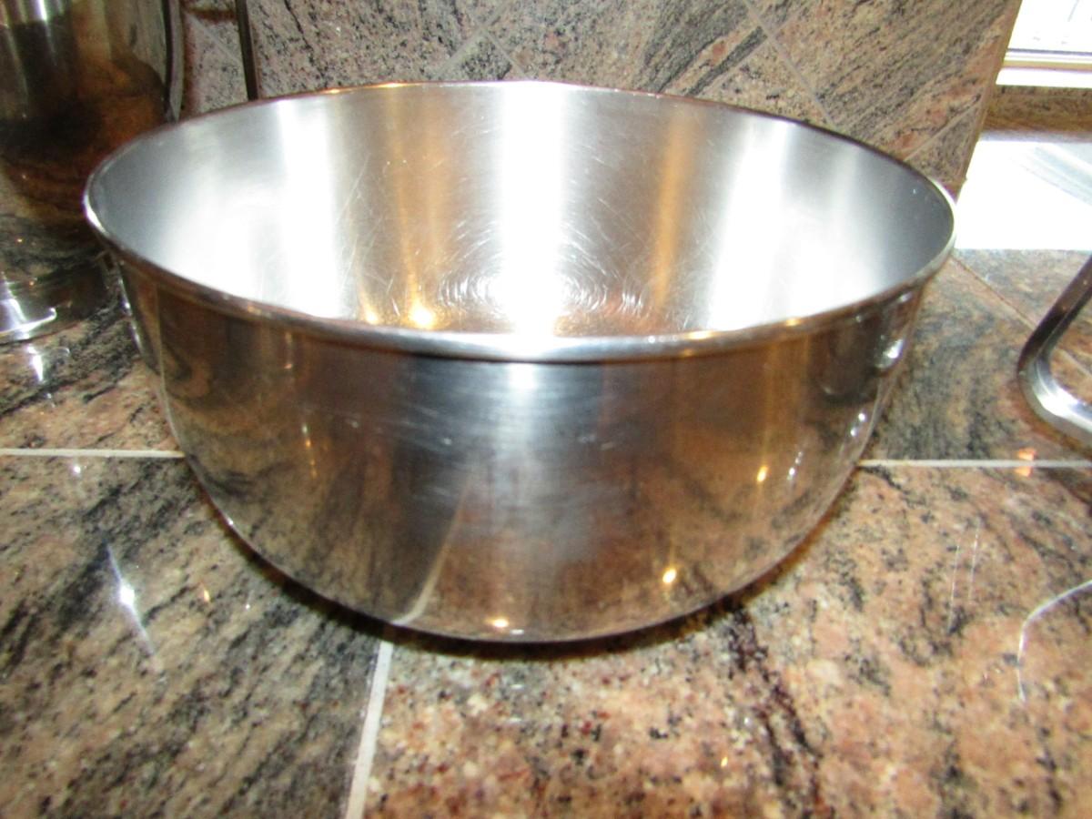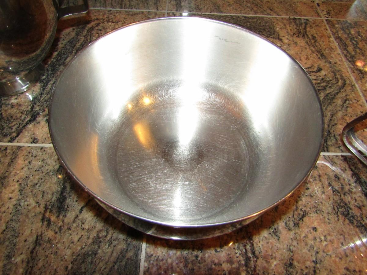 LOT 63 MIXING BOWLS, ROLLING PIN AND METAL STRAINER
