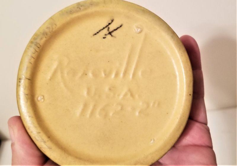 This Roseville pottery pattern dates from 1946 and features blossoms on a textured background that looks like a pool rippling with raindrops. Single candlestick - measures 3.5" across. Good condition.